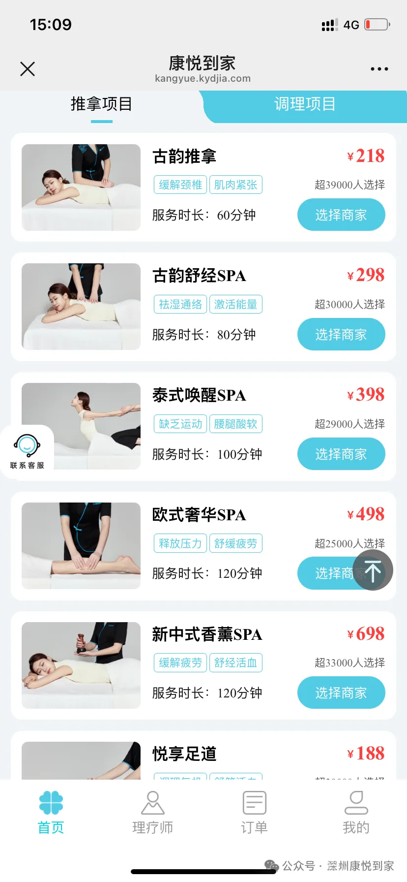 选择喜欢的理疗师,以及适合自己的理疗项目,预约时间,点击立即下单。