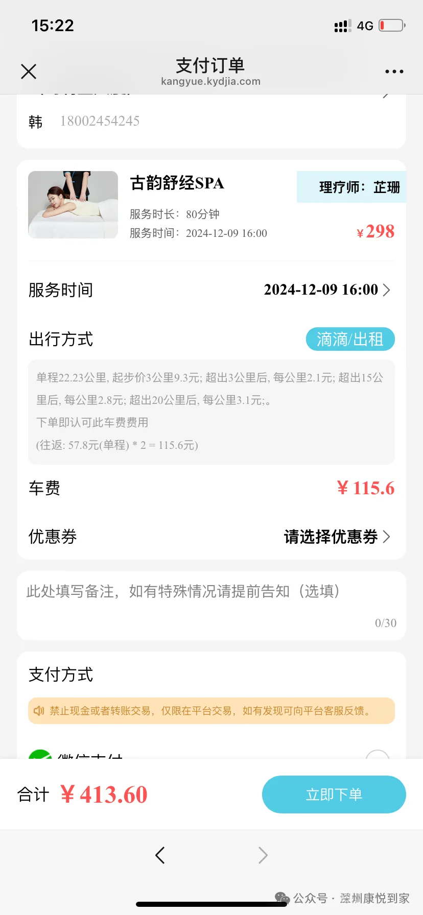 填写联系方式,支付之后,即可等待理疗师得到来啦~~