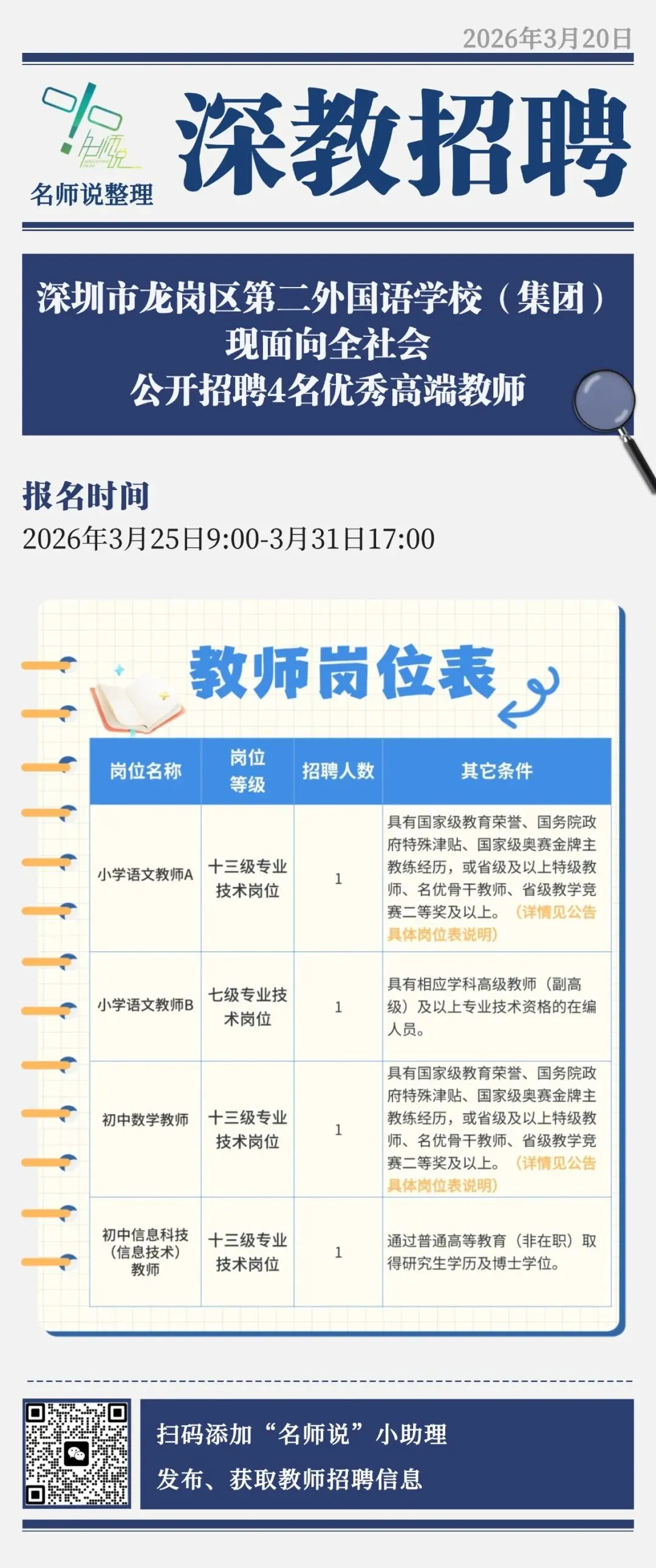深圳教师招聘信息,每日新鲜送达~欢迎各校向我们提供招聘信息,也欢迎各位老师添加小助理沟通交流,一站式获取教师招考资讯。