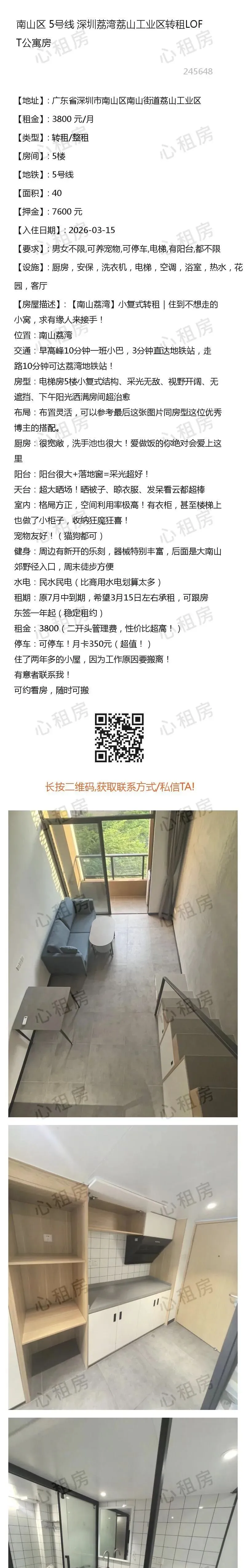 深圳租房【南山4则】房源①:5号线深圳南山荔湾荔山工业区转租LOFT房3800元/月;房源②:.........