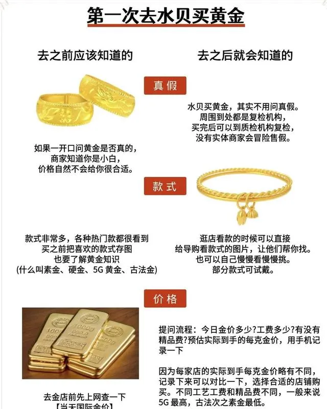 不过我也得提醒你 水贝买黄金不是随便逛逛就能搞定的事儿 你得有耐心 货比三家是必须的 同样一款手镯 不同档口的报价能差好几十块钱 我那天逛了整整三个小时 腿都走酸了 才最终定下来买哪家的 还有就是一定要问清楚工费怎么算 有没有隐藏收费项目 包装盒子是不是免费配 这些细节不问清楚 结账的时候容易产生纠纷