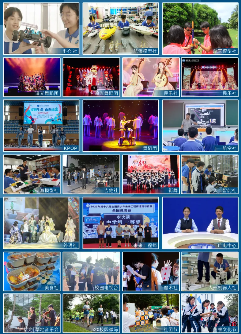 深圳第二外国语学校秉持“多元发展、卓越成长”的理念,构建了层次丰富、体系完善的社团生态,以培养“中国情怀,世界眼光”为目标。学校社团涵盖语言文学、科技创新、艺术人文、实践探索、运动健康及公益服务六大领域,近60个社团。形成“多维赋能、跨界融合”的育人矩阵。学校通过专业导师引领、学术化课程支持,使社团成为学生发展个性、突破边界的“第二课堂”。