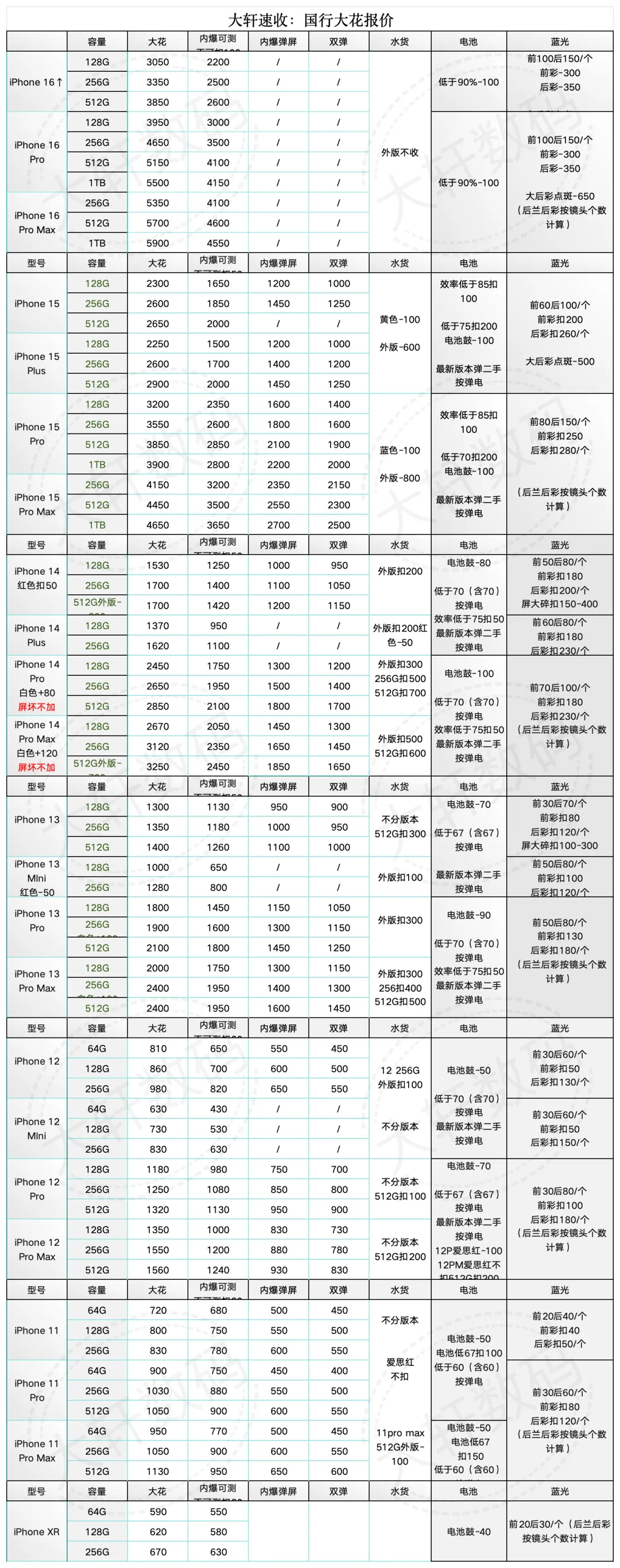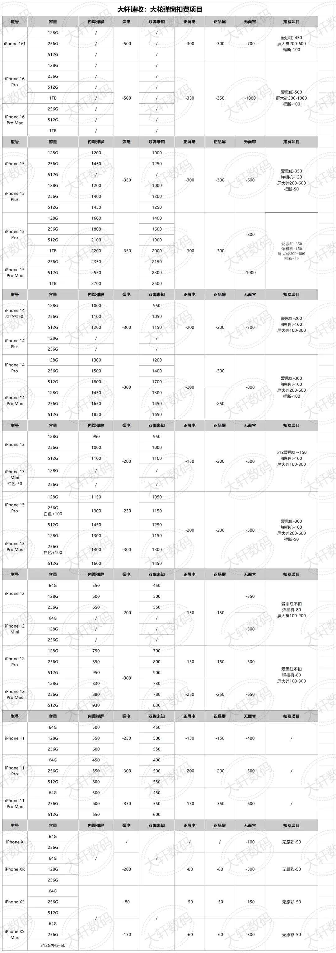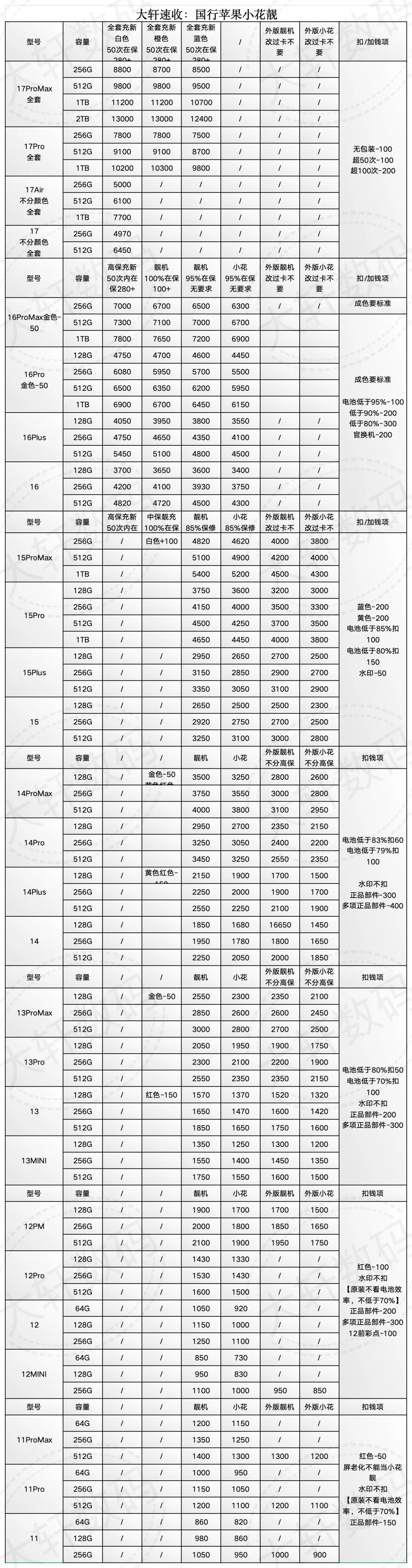 深圳大轩速收 苹果 靓机 小花 大花机03-19号回收报价 大花继续涨价