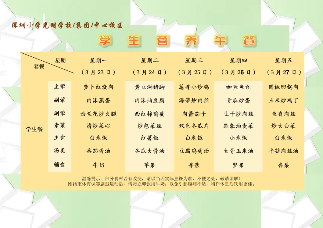孩子在学校的每一餐,都是成长路上的重要养分。我们严格遵循《中国居民膳食指南(2022)》的膳食宝塔标准,为孩子们搭配出这份营养均衡的午餐菜单。