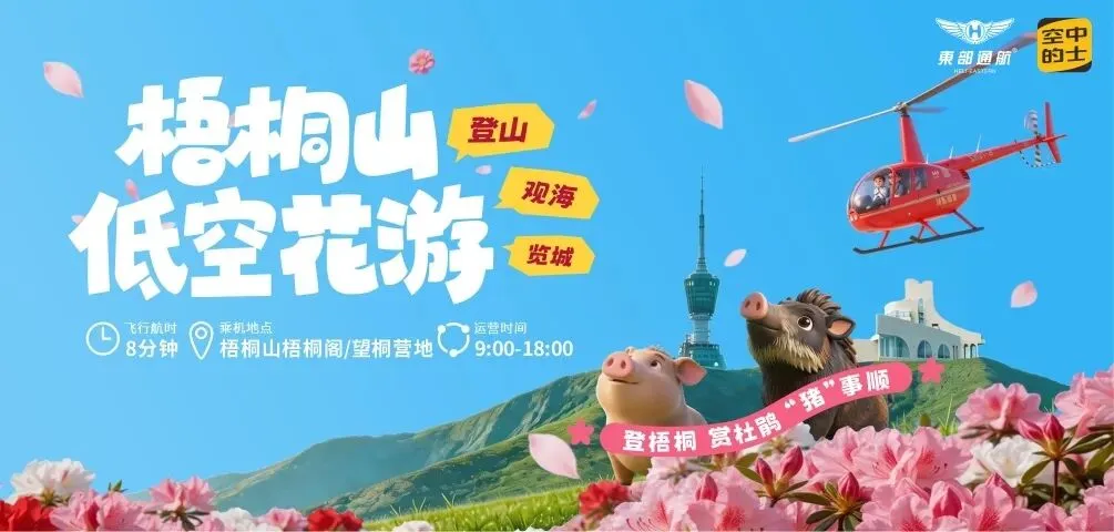 与此同时,东部通航梧桐山低空花游项目同步启航。即日起至4月10日,人均仅需298元即可乘坐直升机冲向云霄,俯瞰三月梧桐山的烂漫花海,为春日出行解锁全新视角。不仅如此,梧桐阁⇔望桐营地单程直飞航线也已同步上线,市民游客可告别徒步劳累,用更轻盈的方式拥抱春日梧桐,将“山海连城”的壮阔画卷尽收眼底。