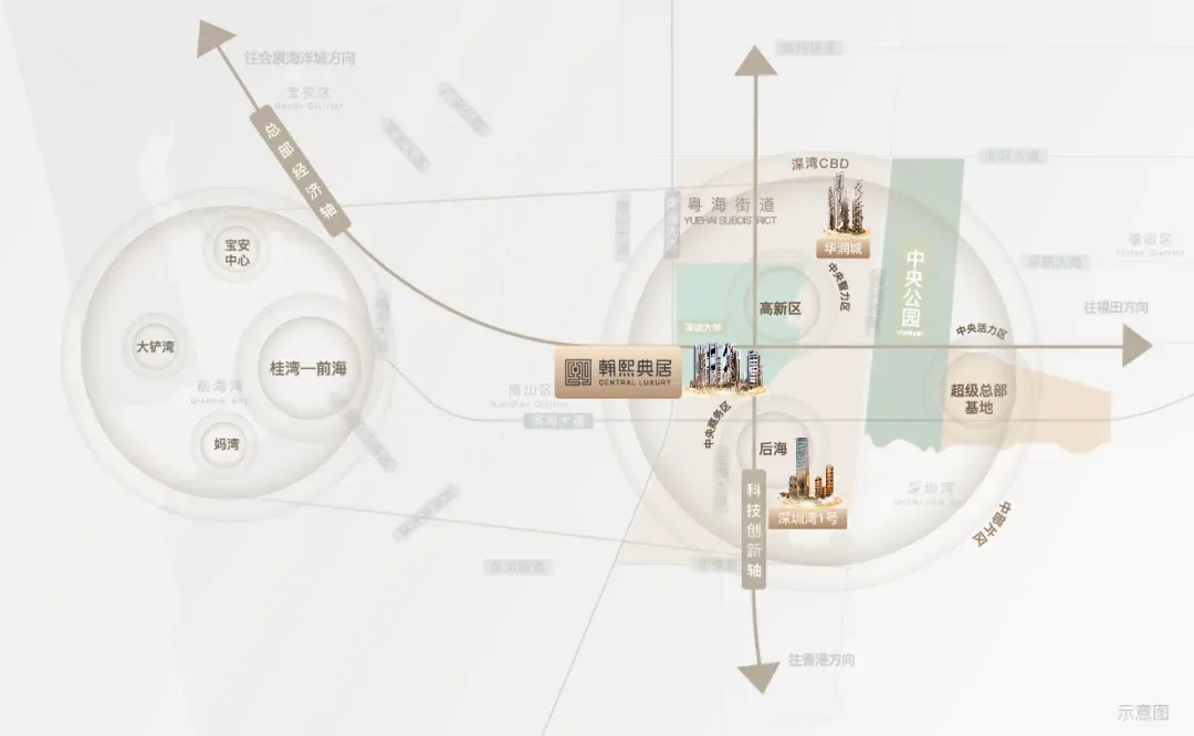 深湾CBD立足南山区“双核”战略核心,串联科技园、后海、深超总、深圳中央公园,聚合金融、科技、人文生态超级闭环,以多维战略产业叠加,重塑粤海价值天际线。翰熙典居,是继华润城之后深湾CBD又一人居地标之作,以时代中心之上的奢居基因,铸就跨越周期的矜贵人居恒产。