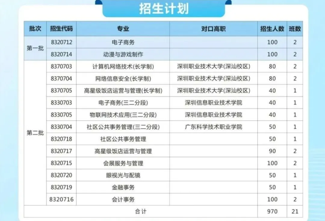专业技能强的学生可以通过自主招生(含高职专业学院联合办学)被深圳职业技术大学、深圳信息技术学院、广东科学技术学院、顺德职业技术学院、广东岭南职业技术学院、中山职业技术学院、广东城市职业技术学院等知名院校录取,圆梦大学。
