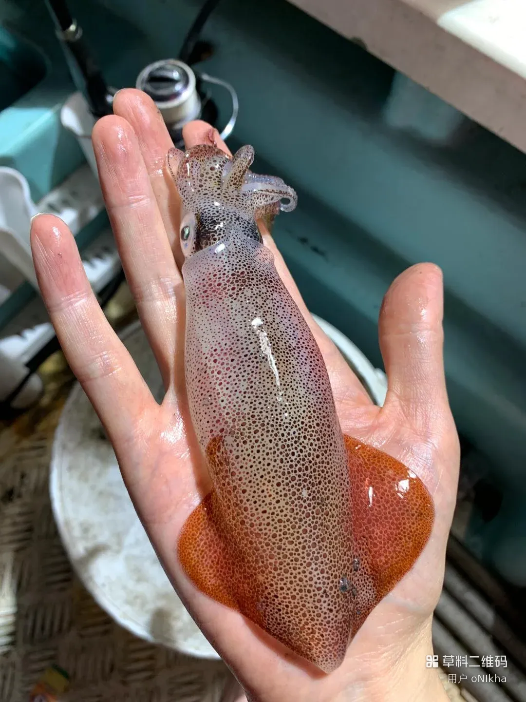 1. 吹筒仔:本质是小鱿鱼,身体细长呈锥形,肉质软嫩、通体透亮,体型偏小(成年个体也远小于普通鱿鱼),就是我们夜钓的主角,也是最鲜美的品种之一;