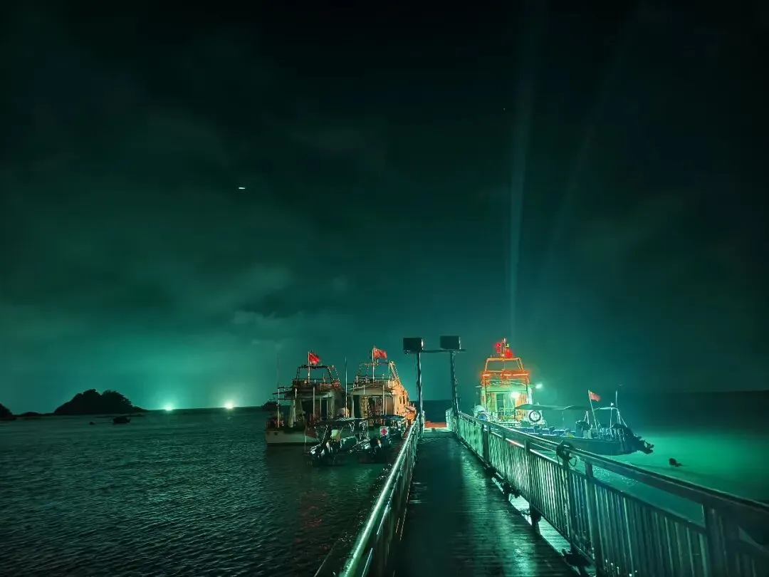 不同于白天的热闹喧嚣,海边的夜晚更显温柔。专业钓鱼艇缓缓驶离岸边,海风带着大海的湿润气息扑面而来,抬头是漫天星光,脚下是波光粼粼的海面,船灯一亮,整片海面都被点亮,吹筒仔循着灯光聚集而来,那种静待鱼上钩的期待,远比想象中更治愈。