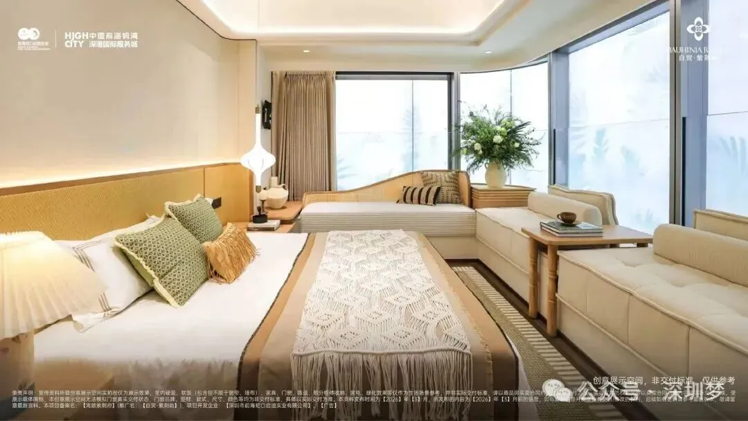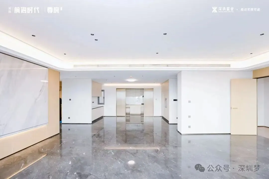项目主推108㎡、129㎡、148㎡三至四房产品,采用新规设计,使用率接近100%,这在寸土寸金的前海堪称"性价比之王"。户型亮点包括2.4米宽度的大阳台,精装交付,吹风价约10万元/㎡,与周边二手房价格基本持平。