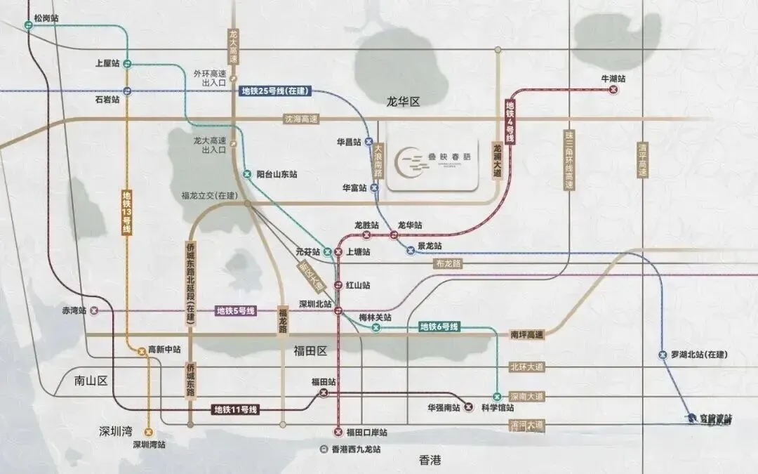 - 距地铁25号线华富站(建设中)仅600米,未来无缝换乘4/6/13号线,直达深圳各大核心片区;