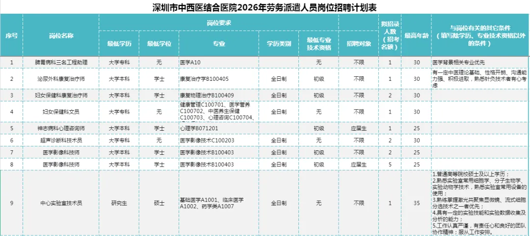 3.符合特聘岗位(市级)、凤凰英才岗(区级)条件申报者可申报相关等级人才认定。4.在职在岗员工可按深圳市住房和建设局及医院相关规定申请医院配套人才公租房。