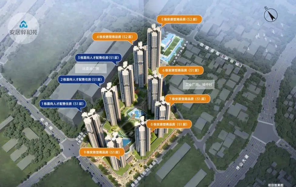为何 “百万级买深圳精装现房” 的诱惑失效?核心是价格优势被市场彻底击穿。安居梓和苑虽看似低价,但 3 公里外的坪山中心区商品房二手房,单价已普遍跌破2万/㎡,且是无任何限制的红本产权;更远处的惠阳淡水,同类商品房单价仅五六千/㎡,价差悬殊之下,安居房的 “性价比” 荡然无存。再叠加项目地处深圳最东端、紧邻惠州边界,三面被比亚迪等工厂环绕,工业噪音、粉尘污染严重,50 层超高层 + 71% 低得房率的产品硬伤,以及 “10 年禁售 + 补缴 50% 增值差价” 的产权枷锁,刚需宁愿选择临深商品房,也不愿为 “深圳户口” 妥协。