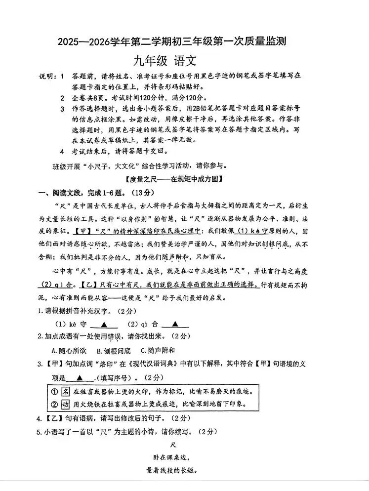 南外集团初三一模:3月30日-31日(周一、周二)