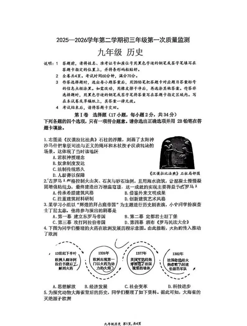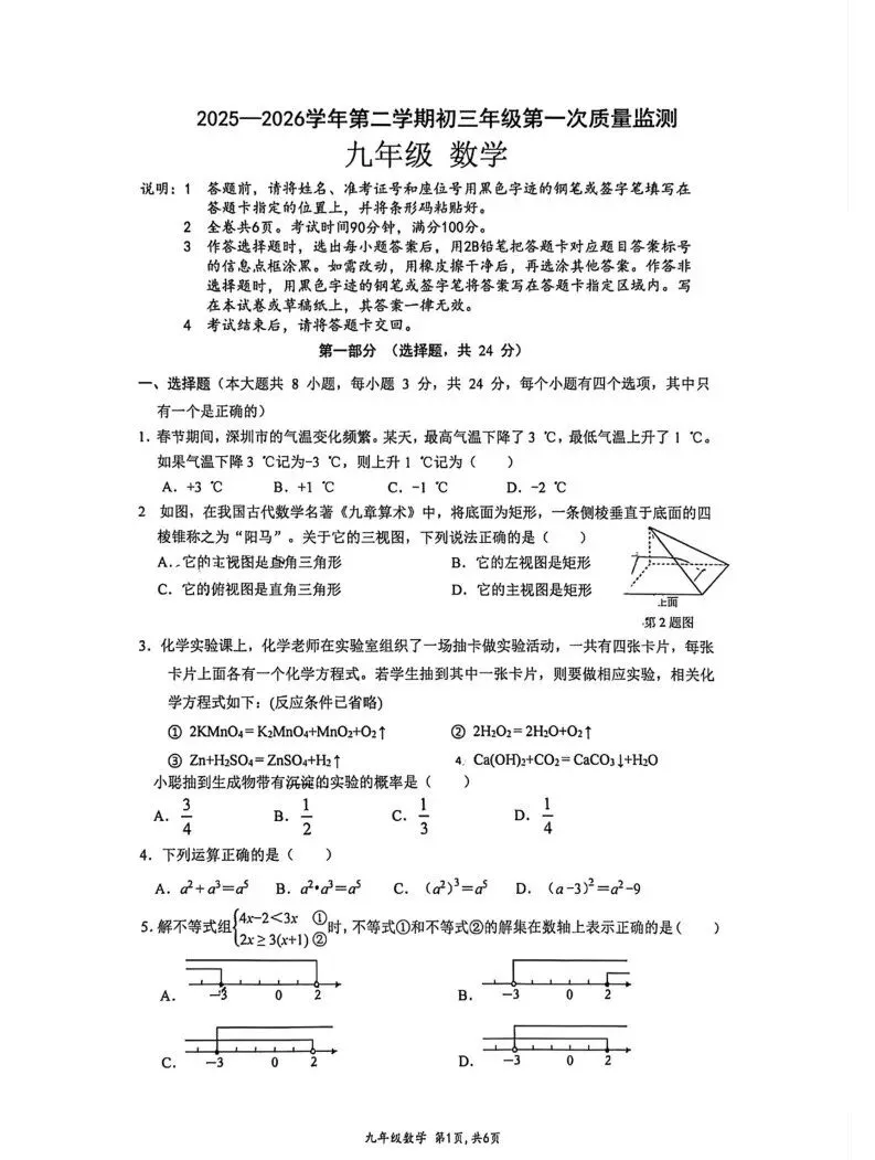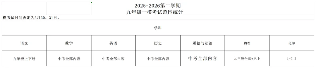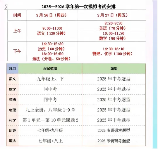 深中体系初三一模:3月26日-27日(周四、周五)