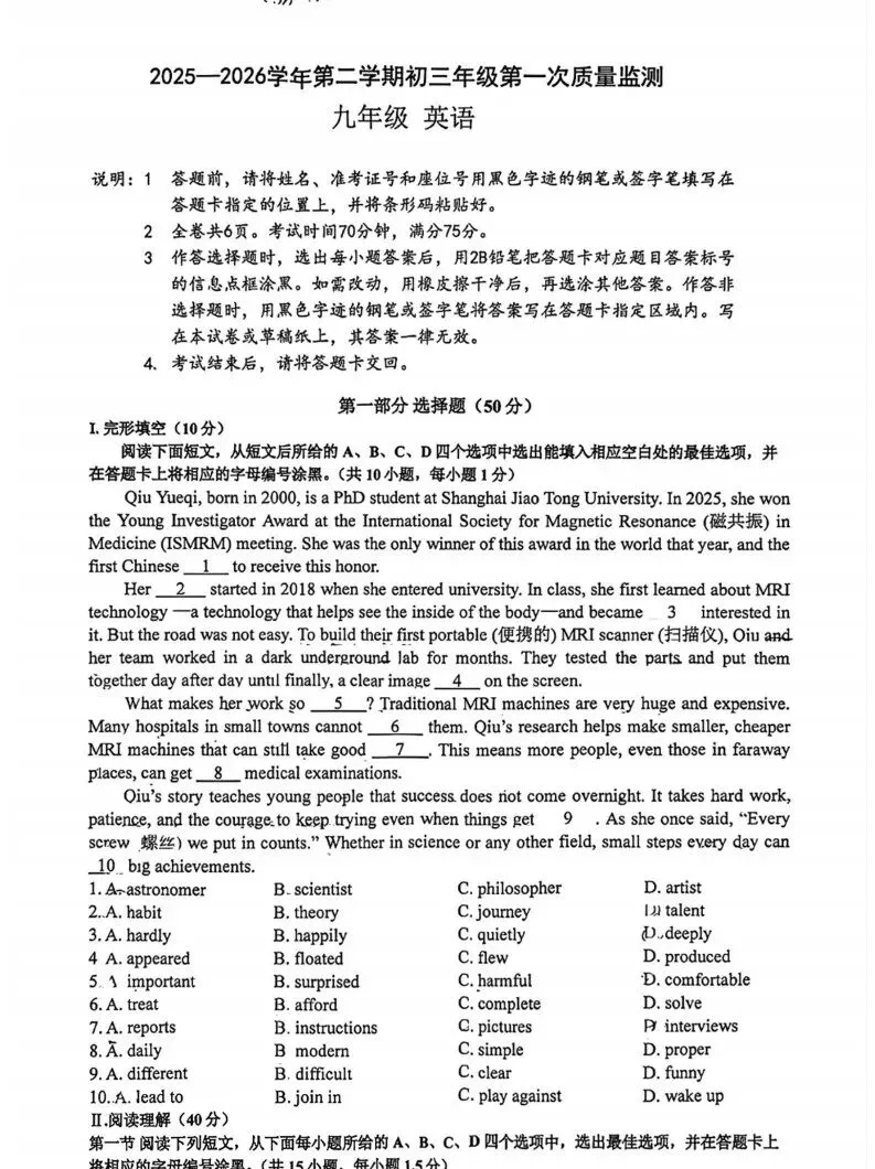 育才集团初三一模考试试卷为3月18日-19日(周三、周四),下面给大家整理了这次育才一模全科真题+答案,需要的家长可文末领取~