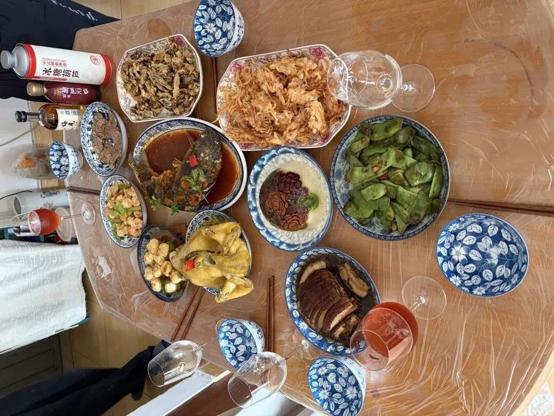 她和爱人在厨房里忙前忙后,油烟机嗡嗡响着,锅铲碰撞的声音混着说话声,不时飘出一股熟悉的香味。他们自己做了几道拿手菜,又从饭店订了些特色菜,最后端上桌的,是满满当当一桌子热气腾腾的饭菜。大家围坐在一起,边吃边聊,笑声一阵接一阵,气氛是那种久违的热闹和暖意。