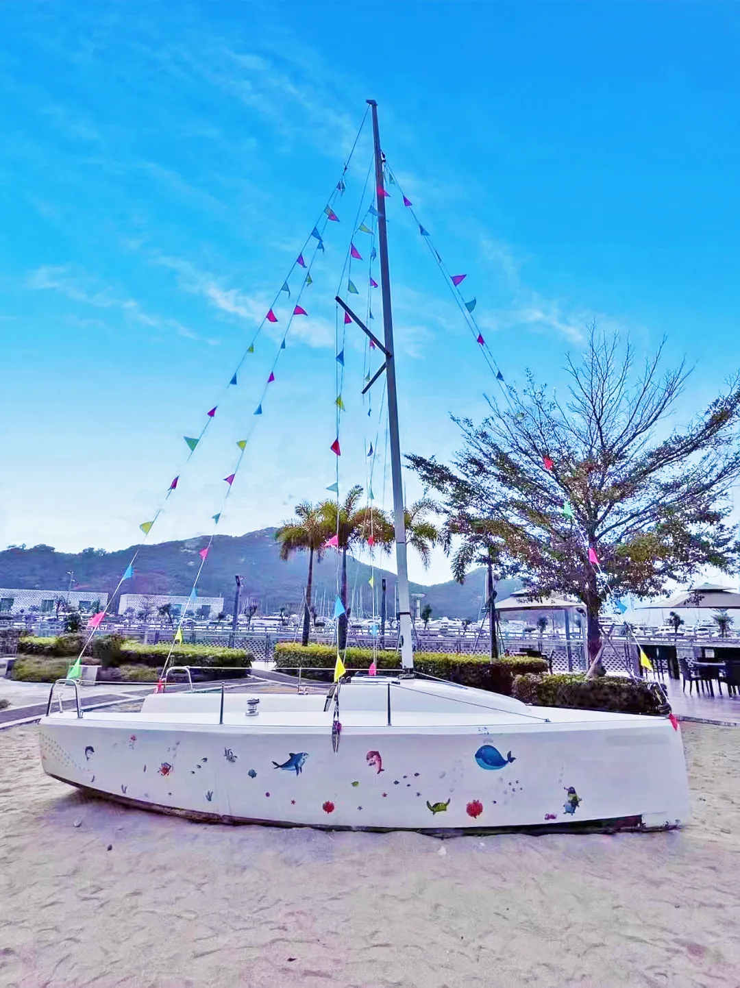 【享】酒店花园吧配套设施(游艇港拍照、天幕营地打卡、网红帆船、儿童沙池)