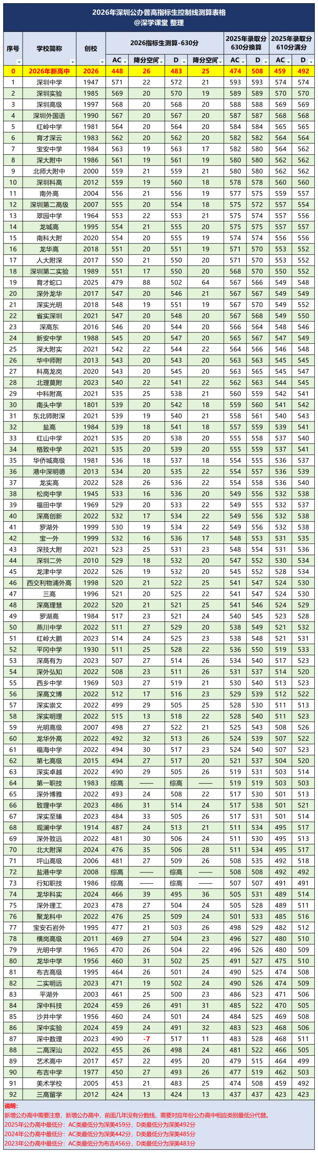 《深圳市2026年中考招生通知》于3月16日正式公布!通知明确了2026年起深圳中考满分将由原来的610分上调至630分,并明确了指标生控制线划线规则(详细点击蓝字查看官方消息!深圳市2026年中考招生通知公布!附20个常见问题解答!):