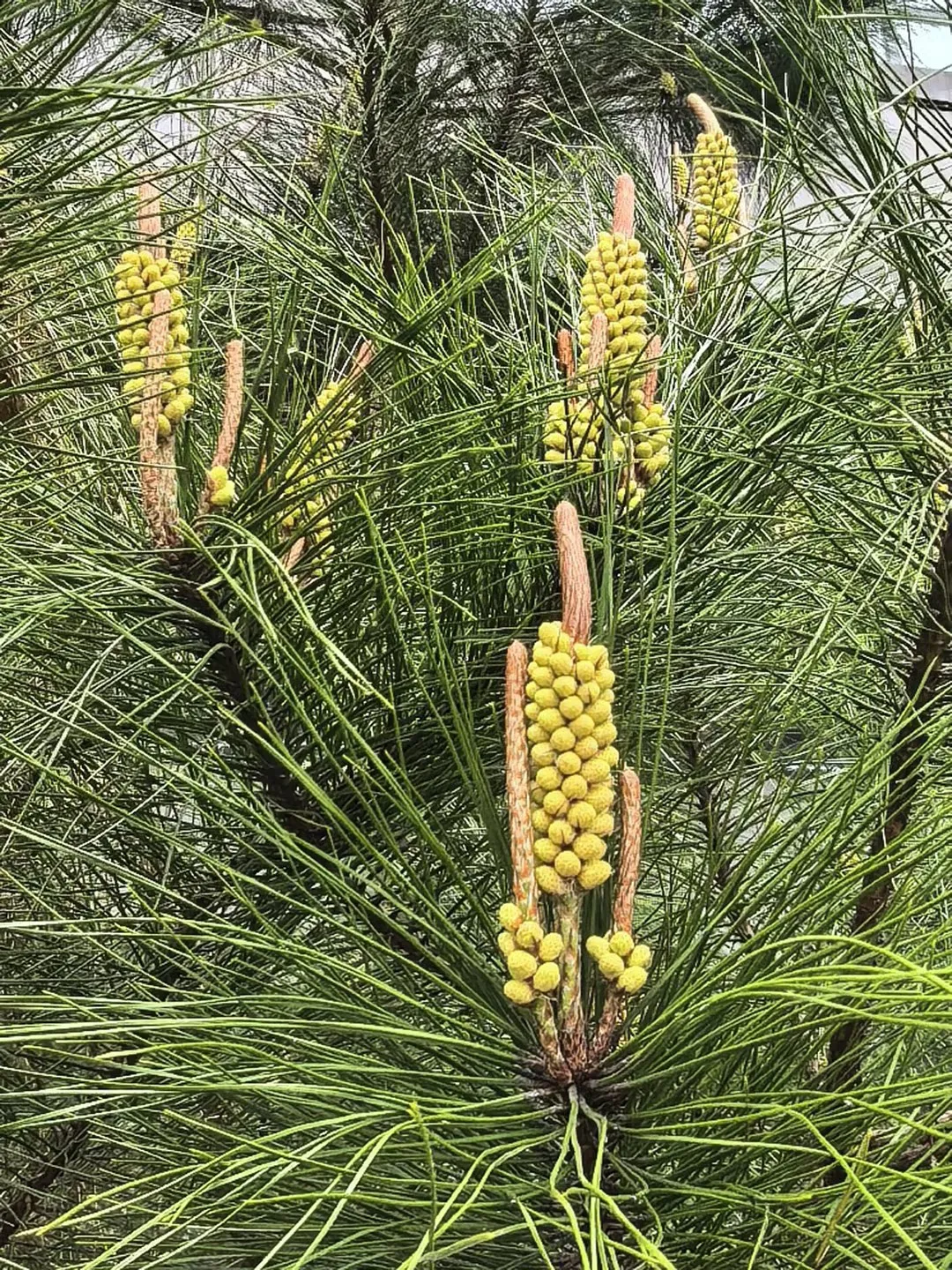 “咳,刚才大家都介绍过了——我们松花的‘才艺’是低调攒大招!现在假装是毛茸茸小星星,秋天就变松果炸弹,还能给松鼠交房租。深圳的树可能忙着当景观,咱们忙着养山养土养小动物,这叫‘扎根式土豪’,厉害吧!”