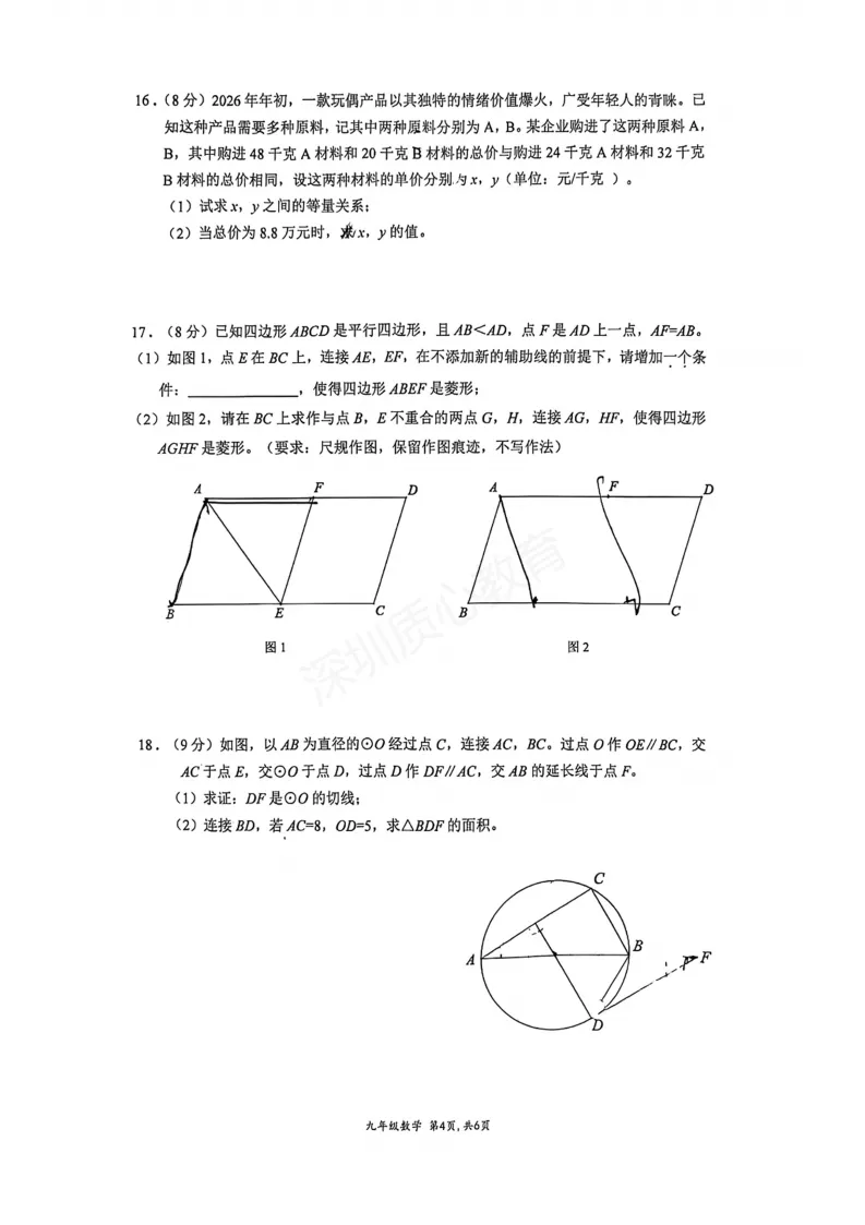 最新真题出炉!给大家收集到了2025-2026年深圳育才九下一模全科真题+完整答案,可以文末直接领取练习哦!
