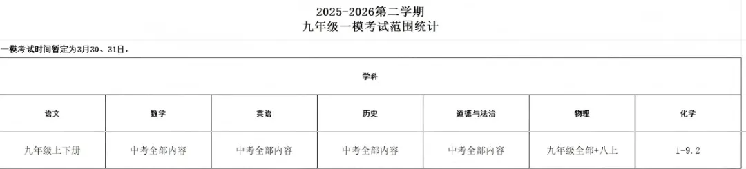 深中体系初三一模:3月26日-27日(周四、周五)
