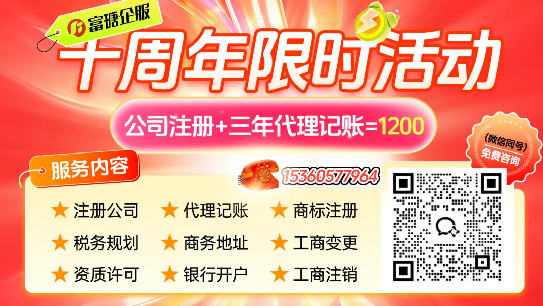 富瑭企服推出十周年限时活动:公司注册+三年代理记账=1200元!!!