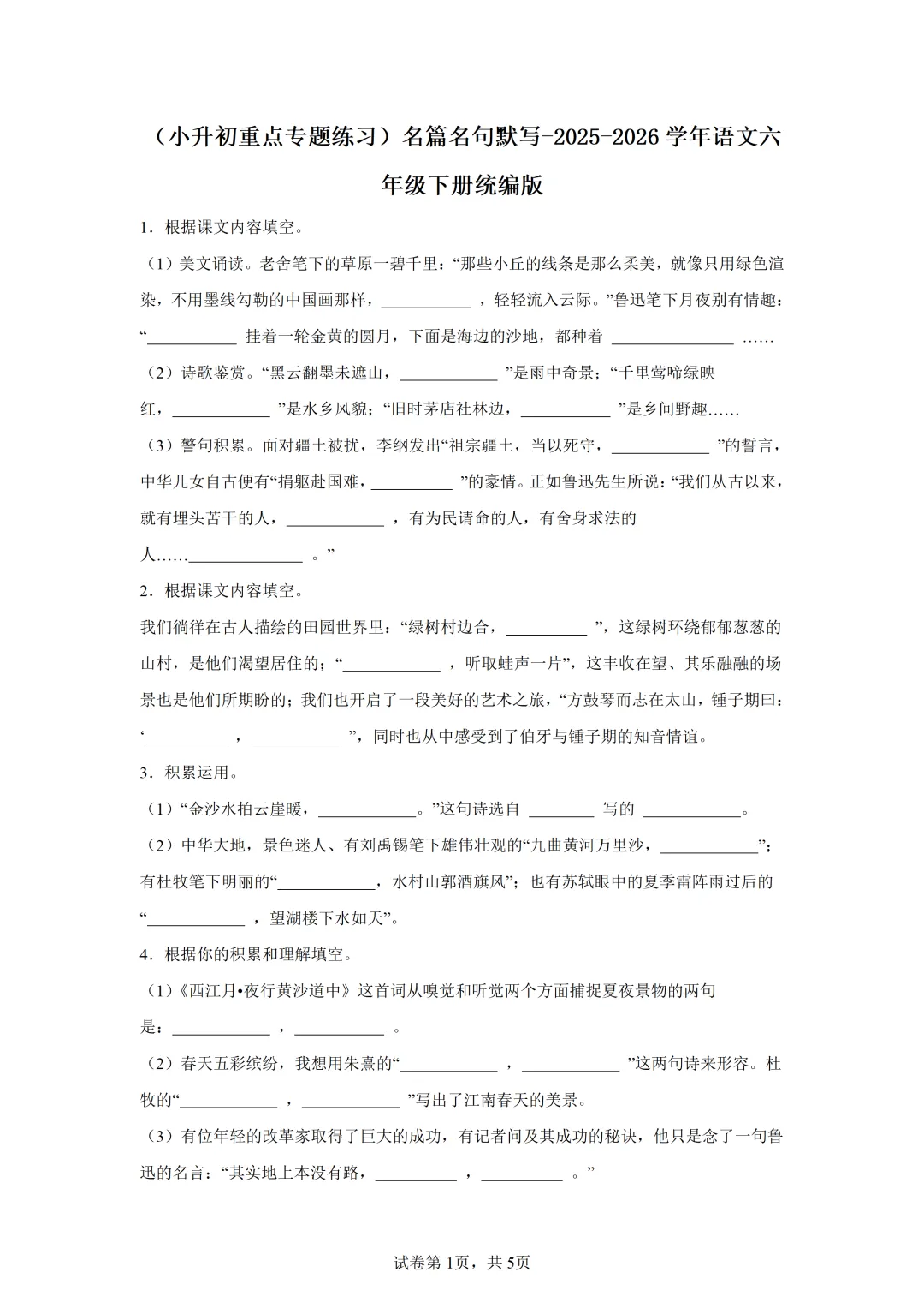 【小学语文 精品试卷合集 1-6年级下册】点击复制,打开「夸克APP」即可获取。