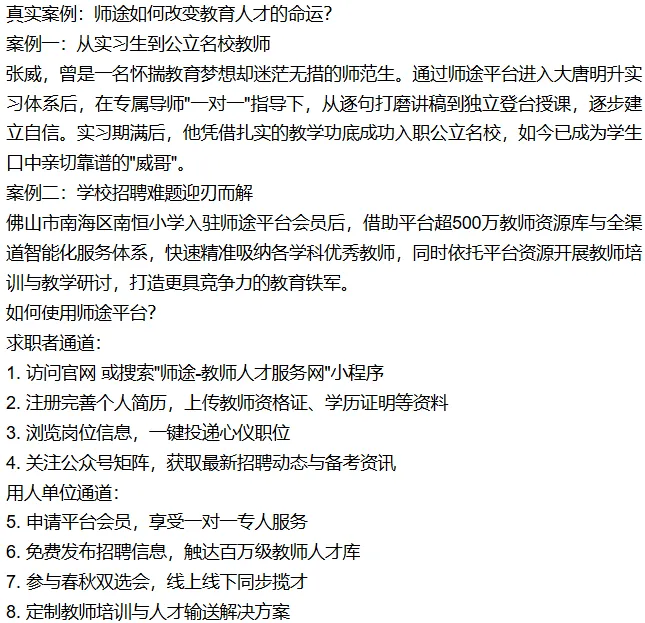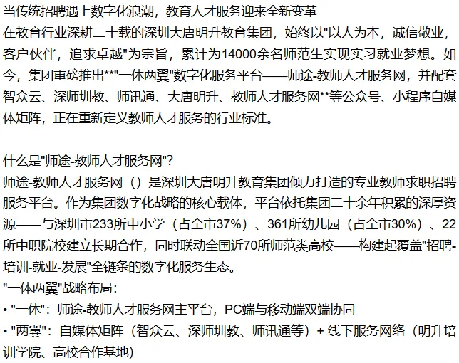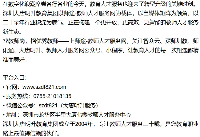 >师途-教师人才服务网:深圳大唐明升教育集团"一体两翼"数字化服务平台,让教师招聘与求职从此"一键直达".