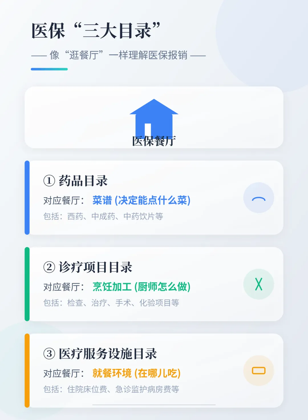 👉 实用提醒:看病开药时,可以主动跟医生说:“医生,麻烦在医保目录内优先给我用药。” 不确定某种药报不报?打开“国家医保服务平台”APP一查便知!指的是各种检查、手术、治疗等。必须是临床必需、且物价部门批准的项目才能报。挂号费、病历工本费、美容项目(如割双眼皮)、牙齿矫正、种牙、体检费、各种健康保健项目等。