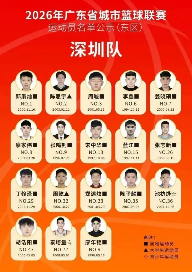 作为广东重点打造的群众体育IP,本届粤BA全面推行本土化改革,深圳队严格遵循本土选拔规则,组建了一支由老中青三代球员组成的18人精锐之师,涵盖CUBA冠军成员、省联赛老将、国青小将及民间高手,完美融合了深圳民间篮球的深厚底蕴与校园篮球的青春活力。