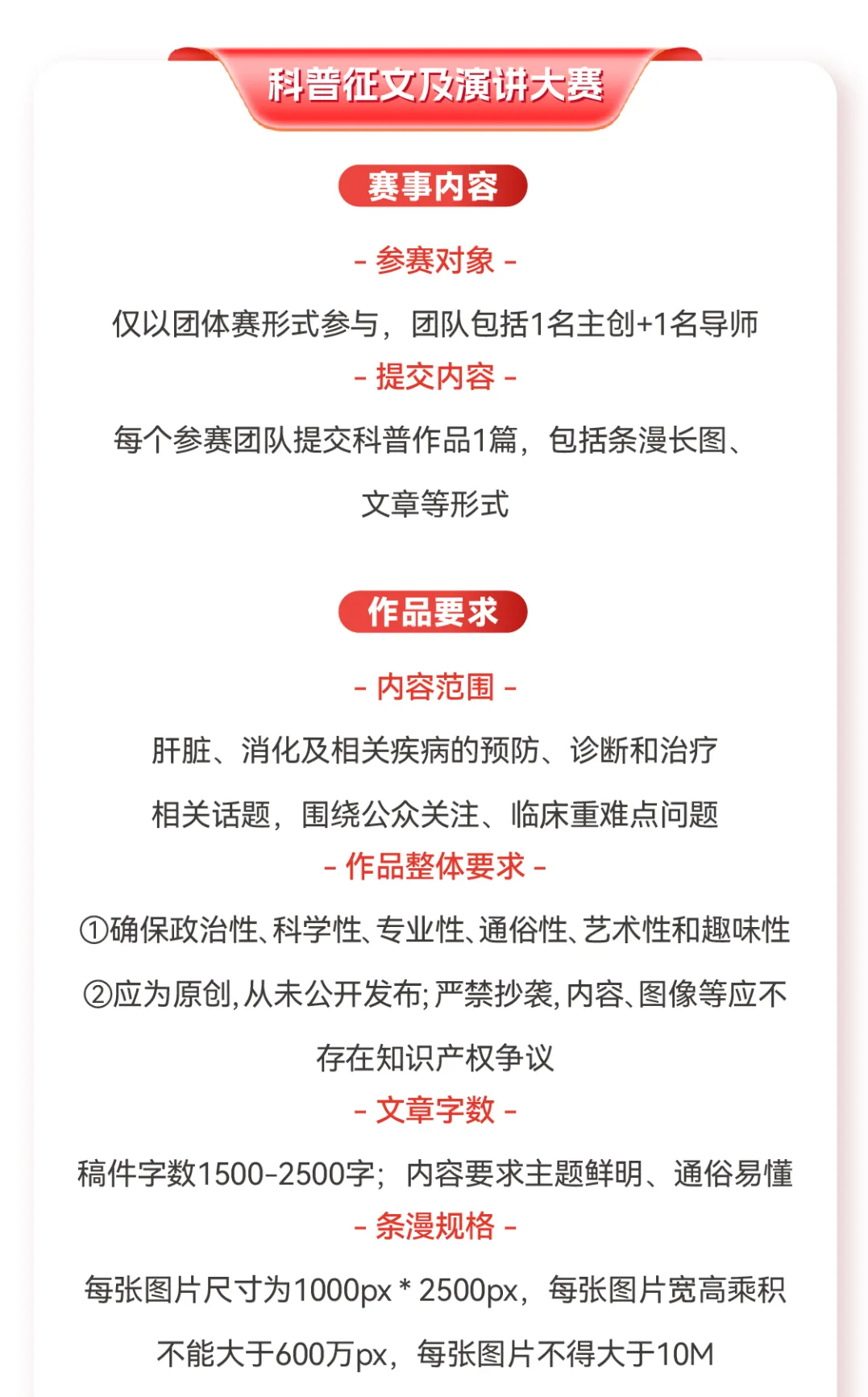 用专业之声传递肝脏健康知识,用创新形式点亮公众科学素养!您的每一篇科普作品、每一次演讲,都是助力“健康中国”建设的坚实一步!