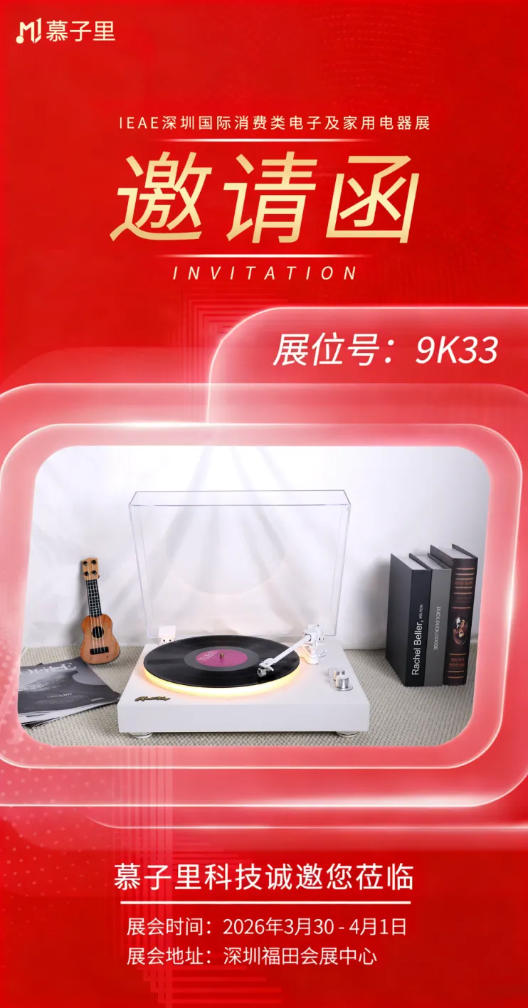 2026 IEAE深圳国际消费类电子及家用电器展览会即将启幕,作为专注黑胶唱片机、CD播放机、蓝牙音响等产品研发与制造的源头厂家 ——深圳市慕子里科技有限公司,携全新产品亮相展会,诚邀各界合作伙伴、新老客户莅临现场,共探行业机遇、共谋产业新发展!