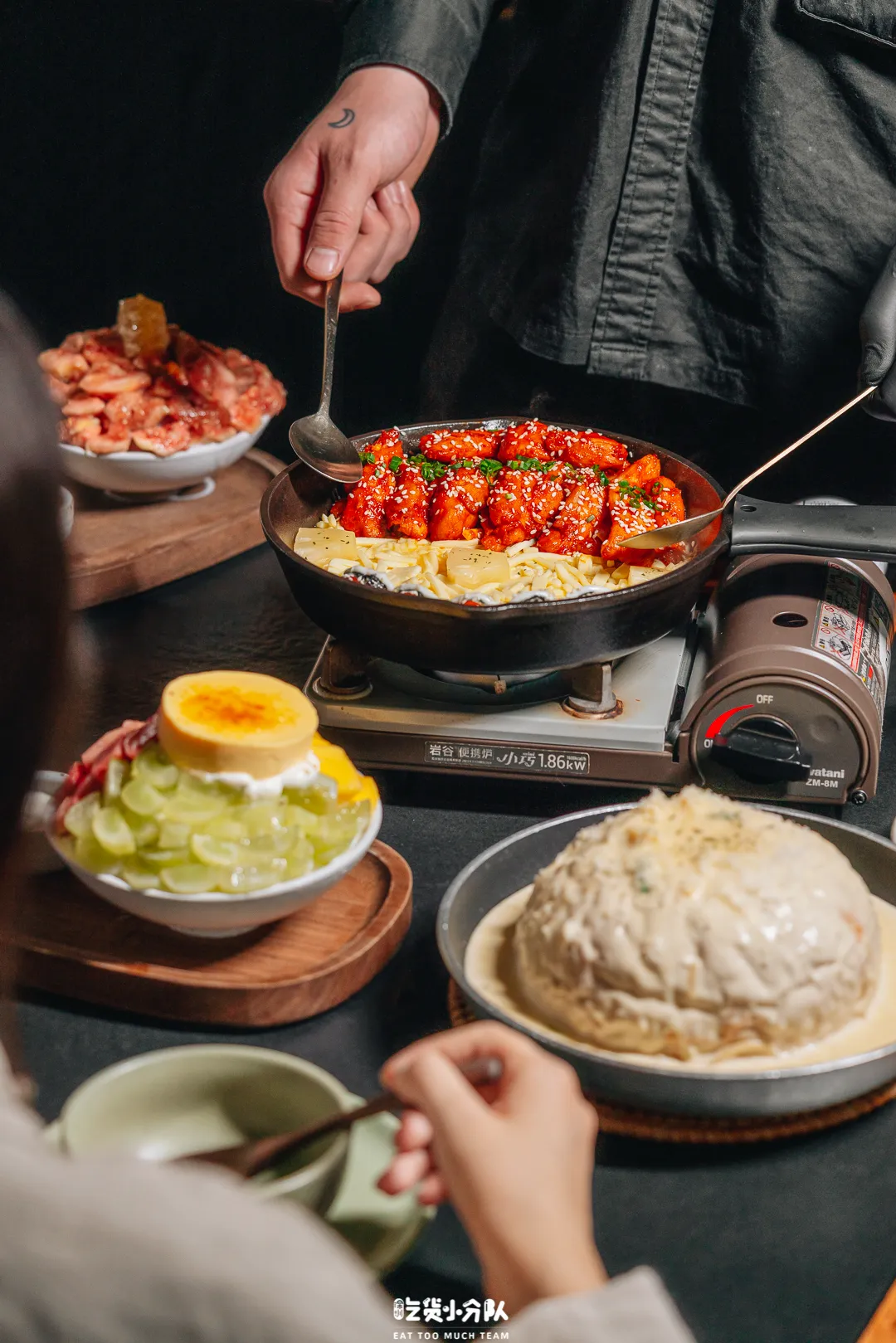 NEED创意韩国料理,一到点就开始排队,高峰期甚至拿号几百桌。他家的菜品都是在传统韩餐之上,融入创意之后的全新呈现。进店必吃堂炒的“马苏里拉芝士辣炒鸡”和“面包培根奶油意面”,看着拉丝就馋;雪冰是它家招牌,“蜂蜜无花果雪冰”颜值超高。