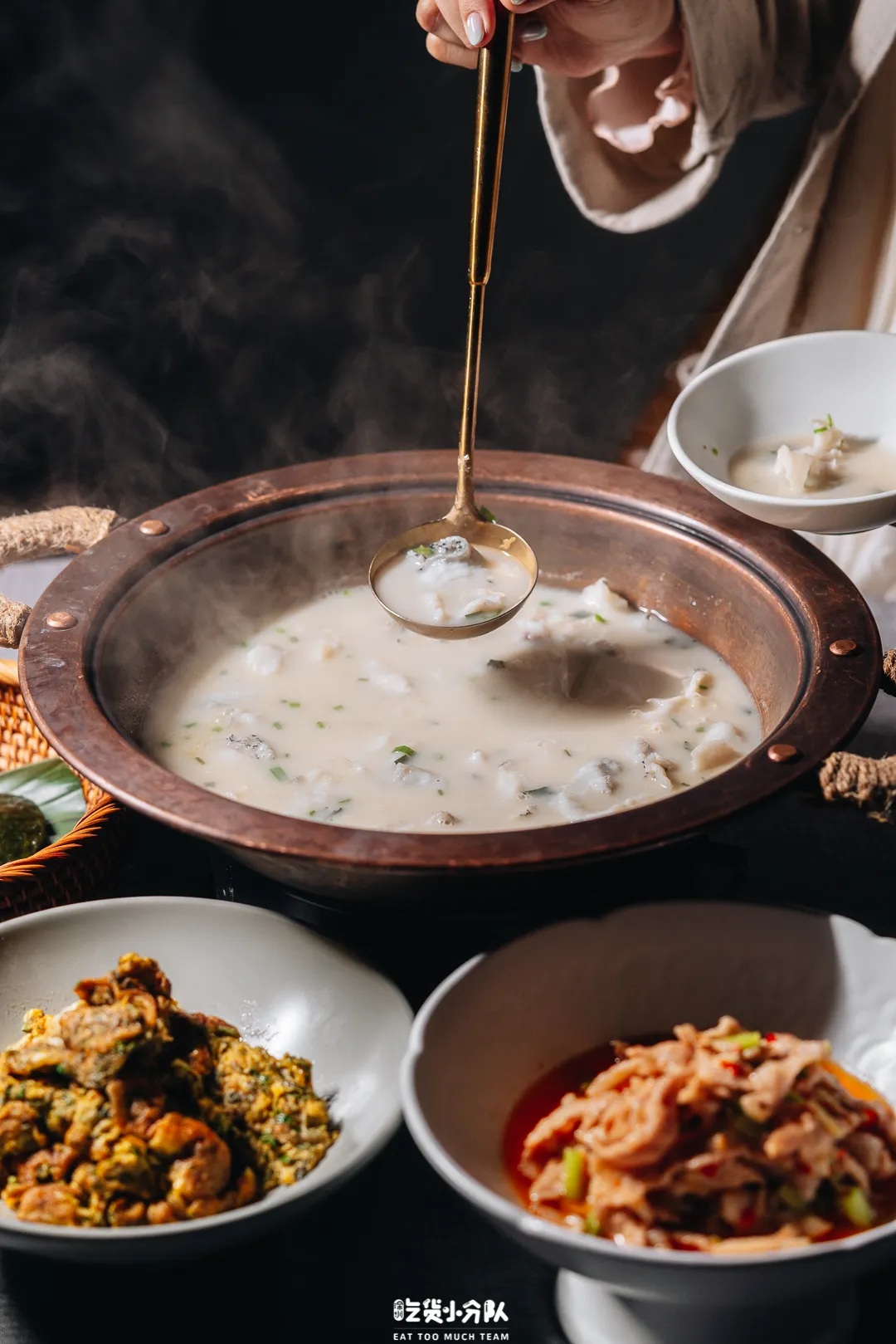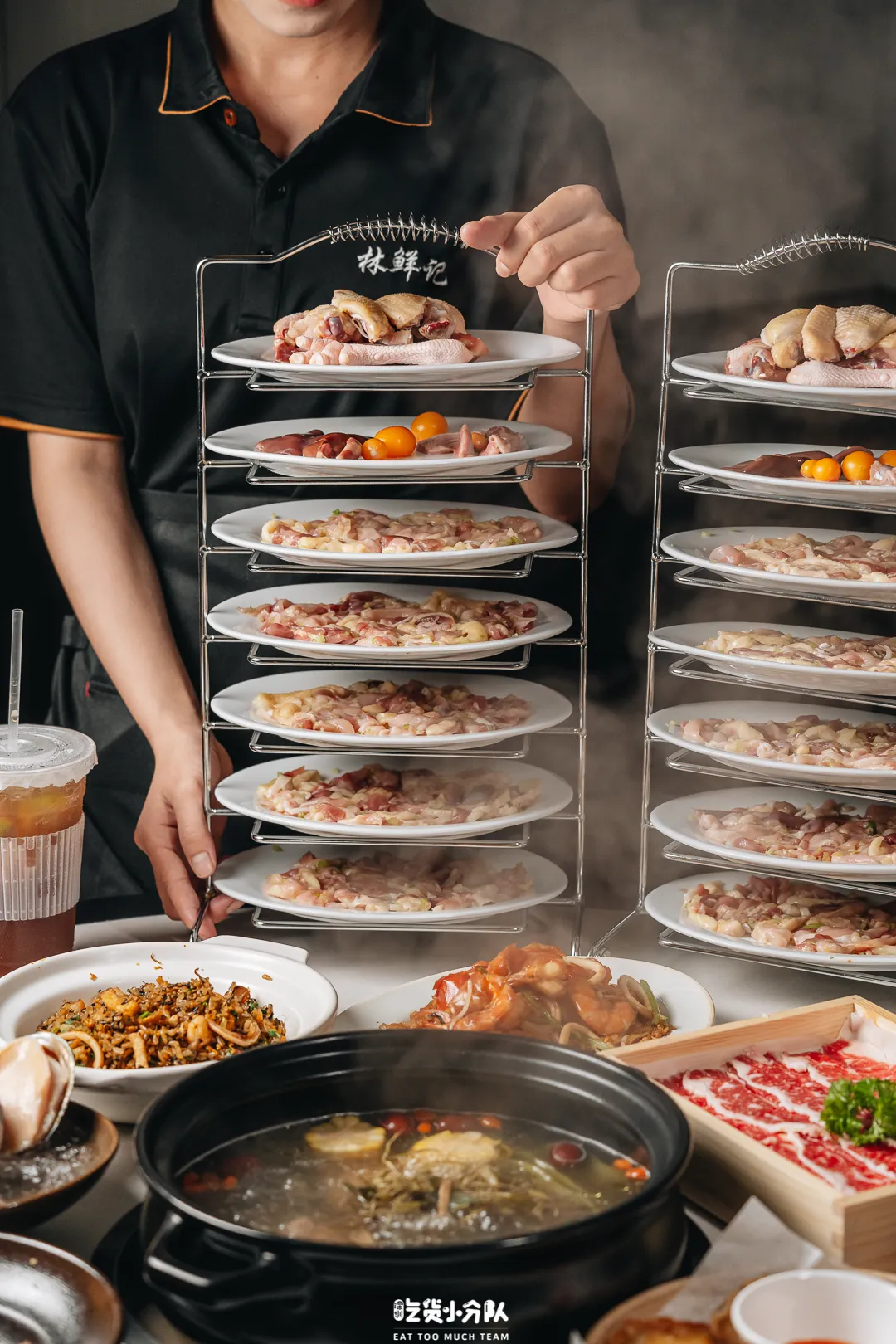 深圳最火的脆皮鸡煲,主打潮汕特色汤底,推荐大家试试「无花果汤底」,用新疆青皮无花果&木瓜熬出水果甜香,煮鸡肉、煮海鲜都很鲜美。搭配食五谷长大的清远山林走地鸡,拆骨取肉,脆弹十足。必点潮汕小吃:紫菜炒饭+咸蛋黄肥肠。