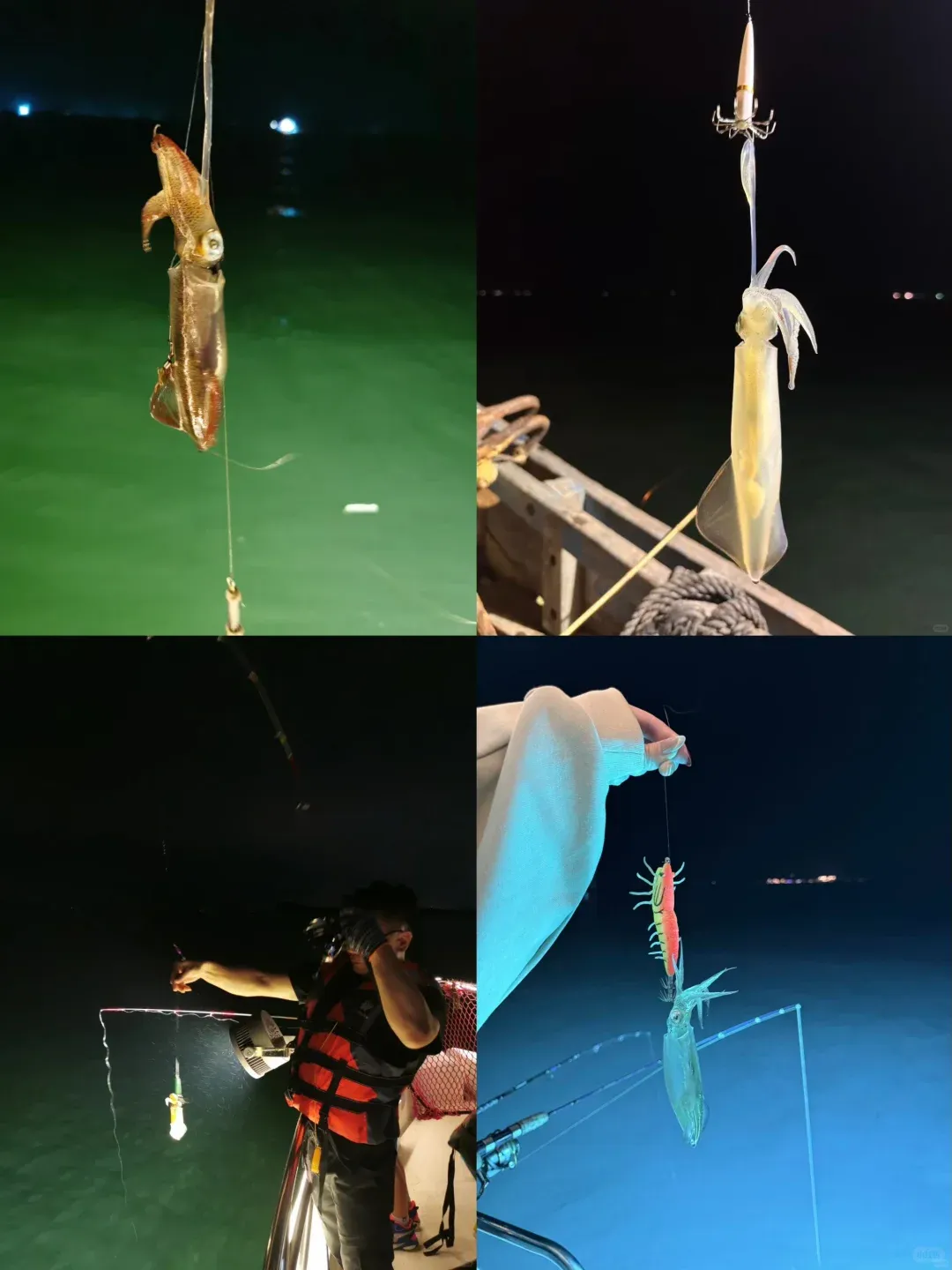 主打夜钓吹筒仔!诱鱼灯一开,鱿鱼疯狂聚集,咬钩手感清 吹筒仔肉质鲜甜,现钓现吃堪称海上深夜食堂,夜晚海风凉爽,拍照也很出片。
