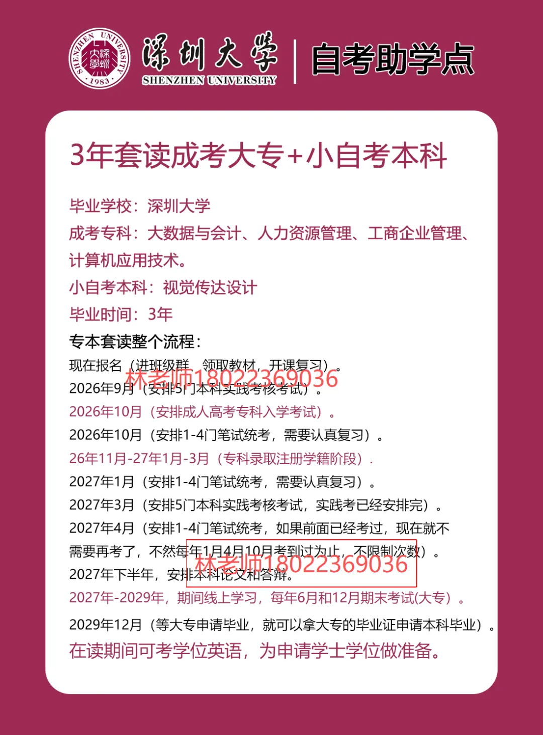2026年深圳大学自学考试春季补录,有准考证号的同学还能赶上春季入学,早半年毕业!