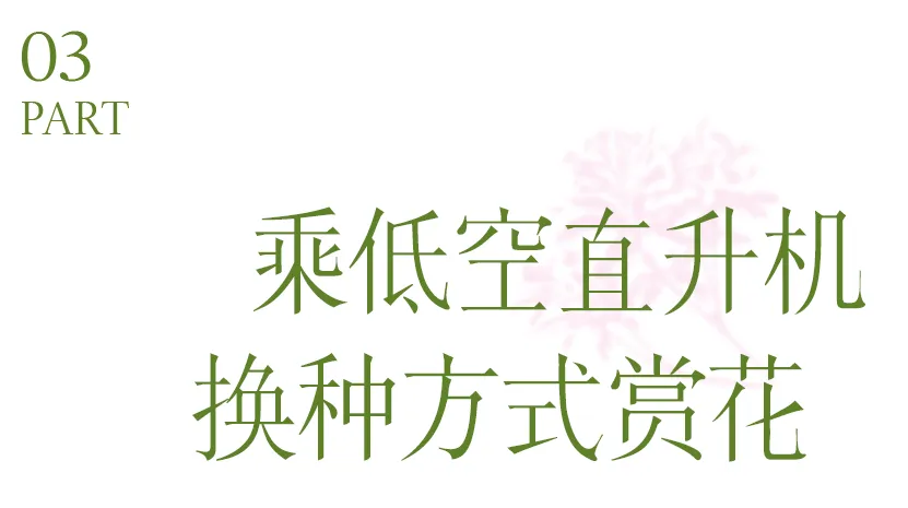 公路线北大门(梧桐山北路)→凤凰台→万花屏→杜鹃谷。沿线缓坡公路上行,老少皆宜,上下山全程时间约4-5个小时。“莲塘”地铁站(登云道)/“梧桐山南”地铁站(凌云道)→杜鹃谷→万花屏→凤凰台。台阶路,适合体力佳,有登山经验的游客,上下山全程时间约4-5个小时。海拔600米赏花线杜鹃谷→万花屏→凤凰台→好汉坡→十里杜鹃→豆腐头→小梧桐。在登上小梧桐区域后,沿着此路线可以打卡所有最美的核心景点,上下山全程时间约5-6个小时。若觉得徒步赏花稍显寻常,不妨试试乘坐直升机,盘旋于梧桐山上空,从空中俯瞰毛棉杜鹃。作为世界上纬度和海拔均为最低的原生乔木型高山杜鹃,自上而下观赏,更能体会花海的震撼。现在来梧桐山,有机会99元乘坐直升机,分3条路线,从低空赏花。与直升机停机坪咫尺相邻的,便是深圳海拔最高的餐厅——梧桐阁,这里也是深圳离天空最近的文旅新地标。位于海拔694米,抬眼便是俯瞰城市的最佳景观位,日落时分是一天最美时刻,在这里喝一次下午茶,是难得的“云端体验”。