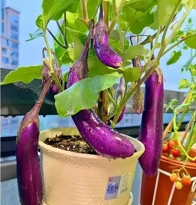 这盆长茄子长势还不错呢,那么一个小花盆,竟然结了大大小小10来个,看着就鲜嫩可口,炒上一盘,肯定不错。