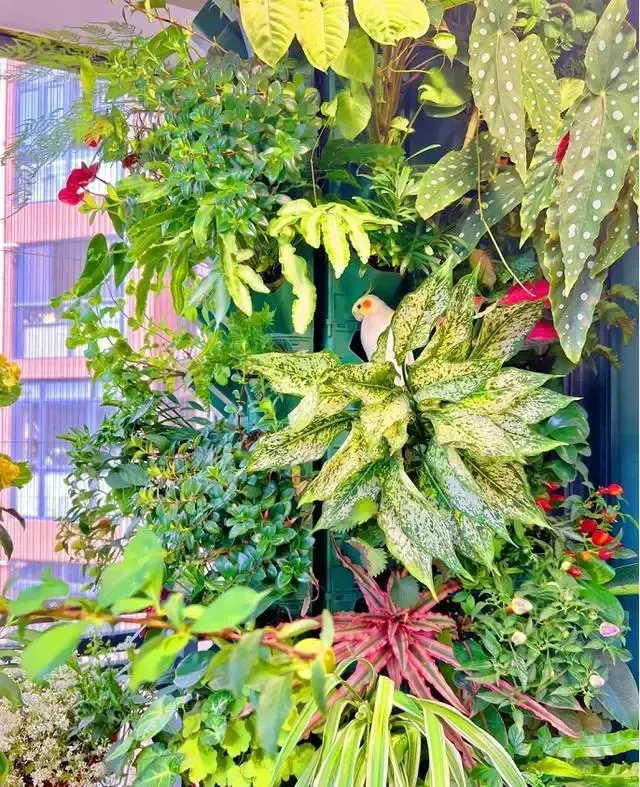 有鳟鱼秋海棠、薄荷、兰花、蕨类植物,指天椒、幸福树、金鱼吊兰、鸡毛菜、飘雪花等等,这些不同种类的植物拼凑在一起,竟然有了非比寻常的效果,圈粉无数。