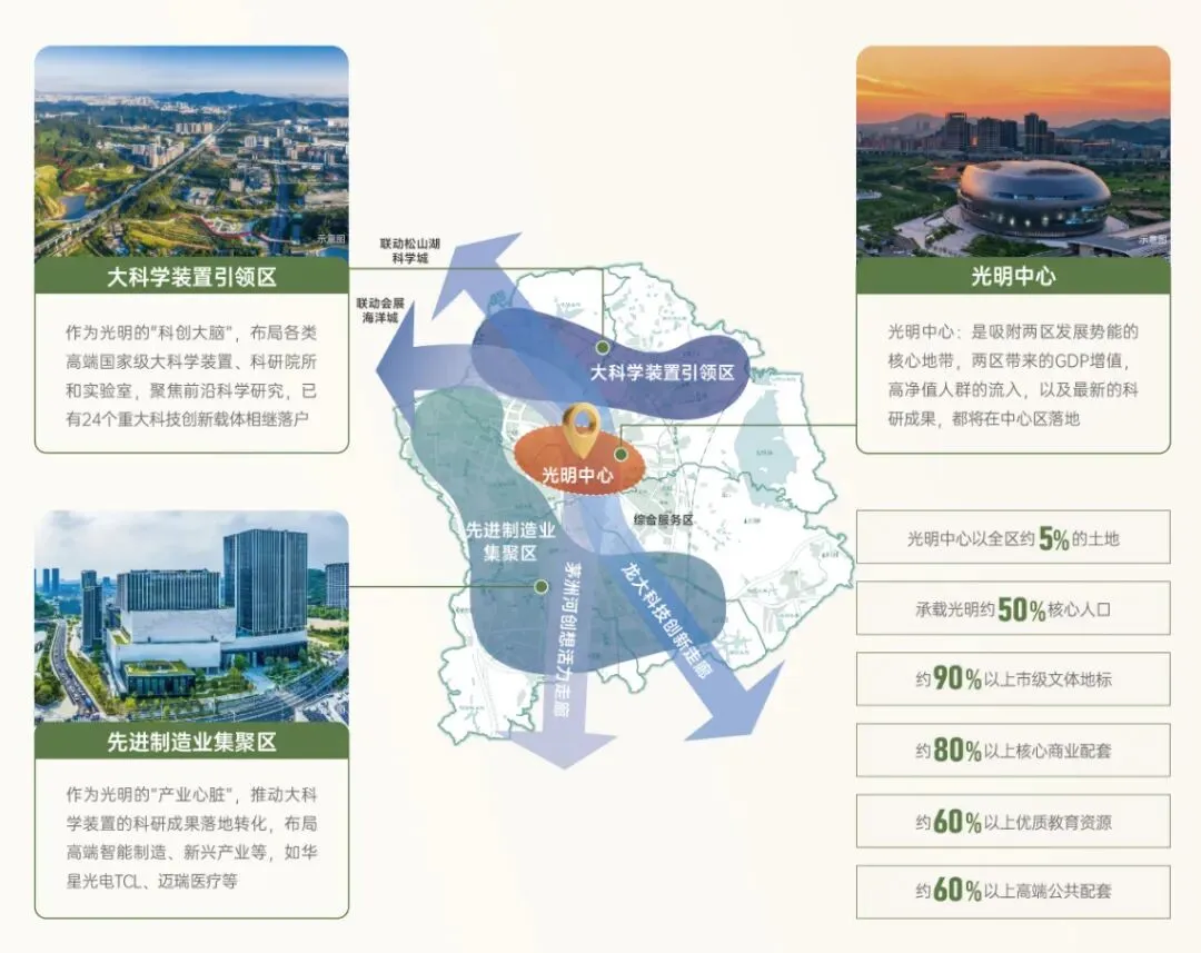 2035规划打造"一心两区”,辐射两大千亿产业集群,光明中心医院银行以全区约5%的土地,承载区内约50%的核心人口,中心所在即价值所向。