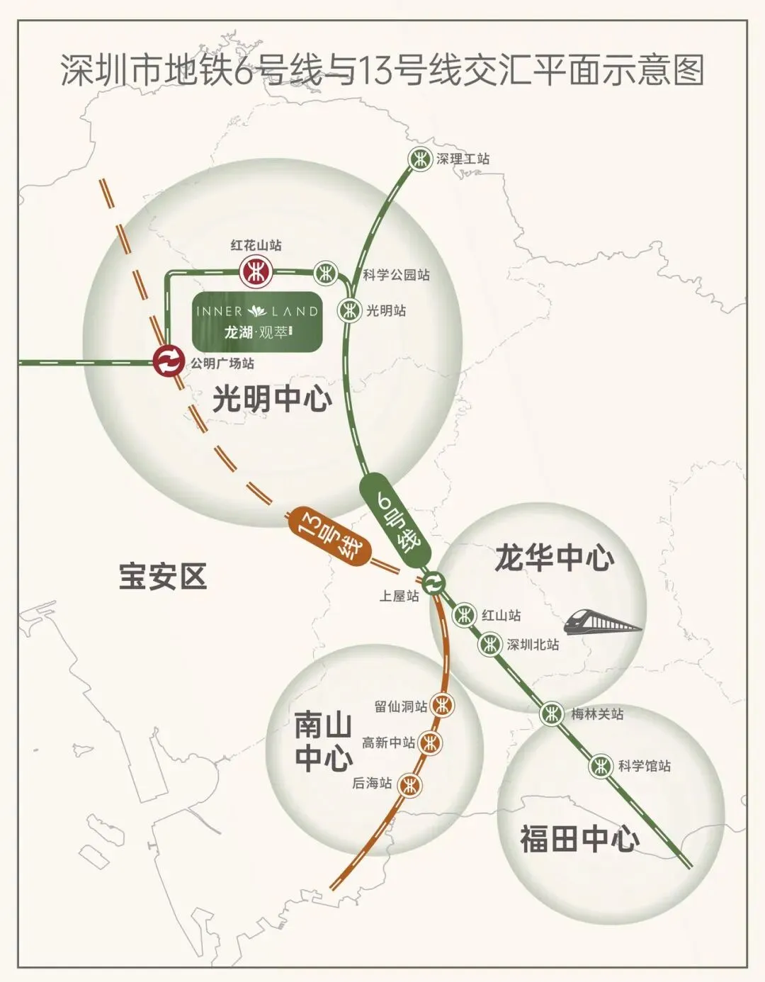 作为光明中心惟一双轨交汇,6号线带领光明融入深圳核心发展脉络,13号线二期(在建中)即将正式通车,将高效接驳南山,加速科创人才及城市资源向中心集聚,执掌光明未来。(资料来源:第一新闻)