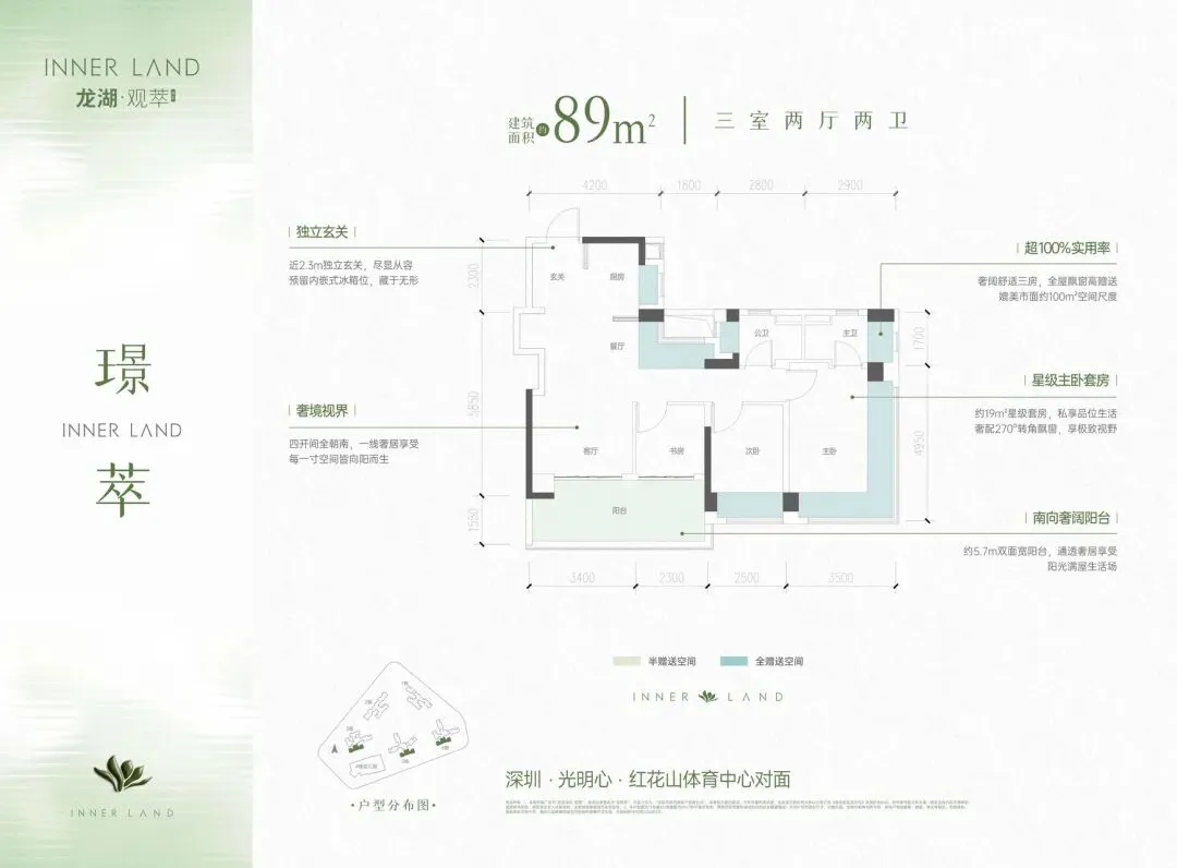 • 得房率超100%(含飘窗/拓展),89㎡≈90㎡+实用面积,同面积多一间房