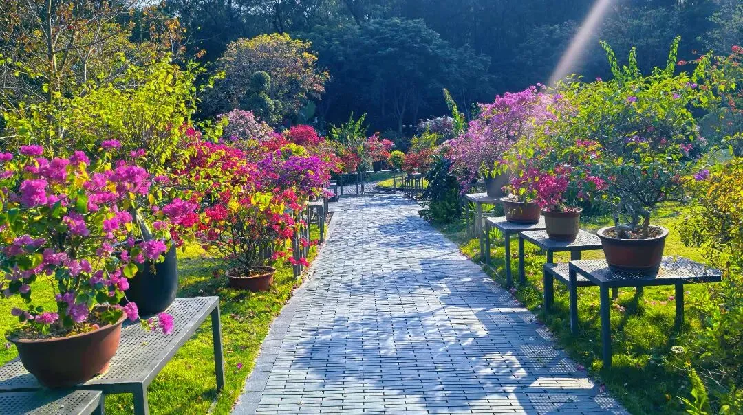 实地考察深圳大沙河生态长廊、车公庙立交桥、莲花山公园,并与当地行业协会交流,重点学习三角梅在城市立体绿化、桥梁花瀑打造、公园景观营造、滨水生态廊道美化中的规模化、精品化应用模式,详细了解品种搭配、造型设计、精细化管养及网红景观运营经验,直观感受三角梅与现代城市空间深度融合的实践应用,为宜良三角梅产业提质提效拓宽市场提供参考。