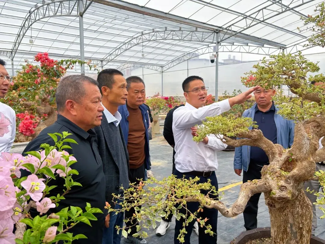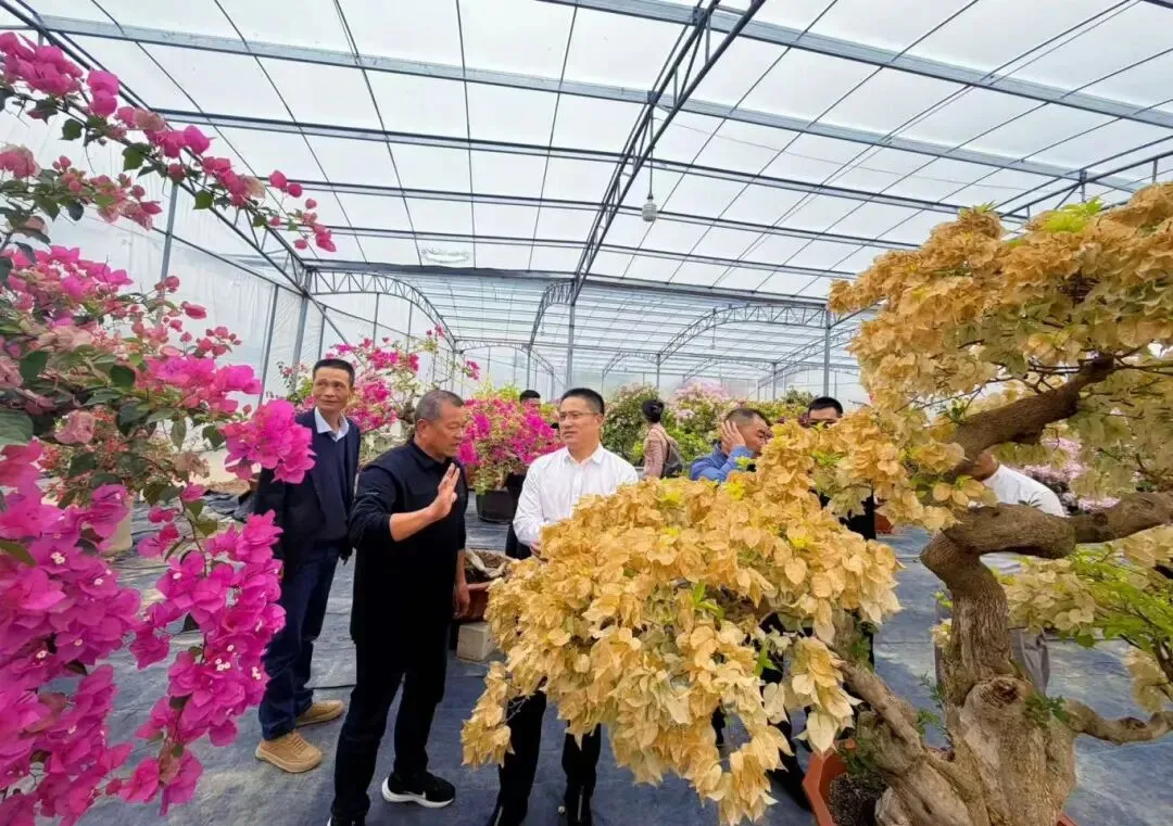 在漳州期间,深入浮山王子园艺、悦园三角梅园、艺景园基地、福景园艺基地、福建坤泰三角梅有限公司、漳州抖卉长电子商务有限公司等,调研三角梅品种选育、标准化种植、艺术造型培育及全产业链运营模式,交流种苗研发、市场拓展、品牌打造及产销对接经验,学习产业集群化发展、电商营销、文旅融合等先进做法,补齐宜良在品种创新、精品培育、市场运营等方面的短板。