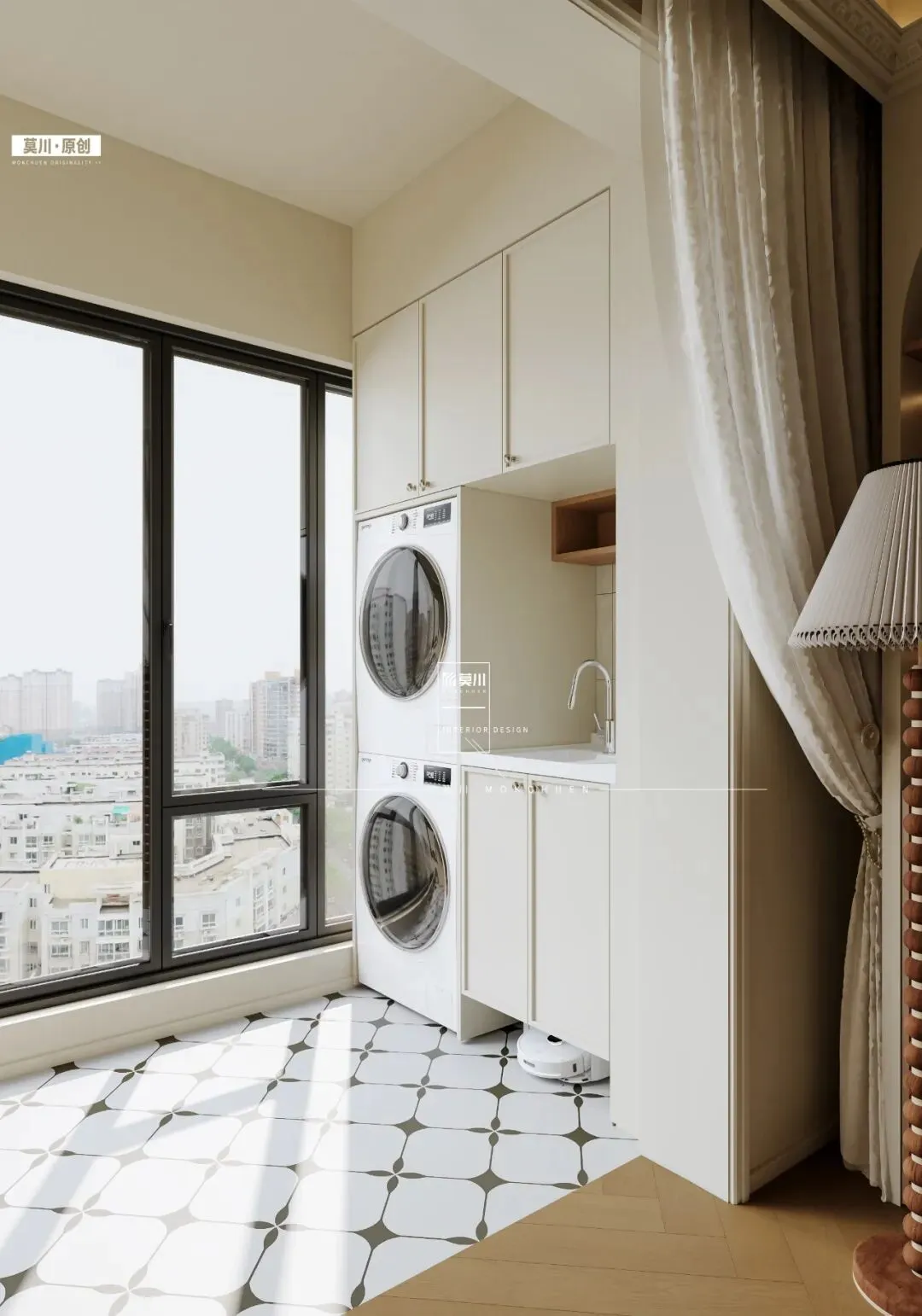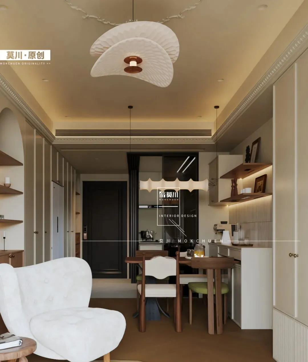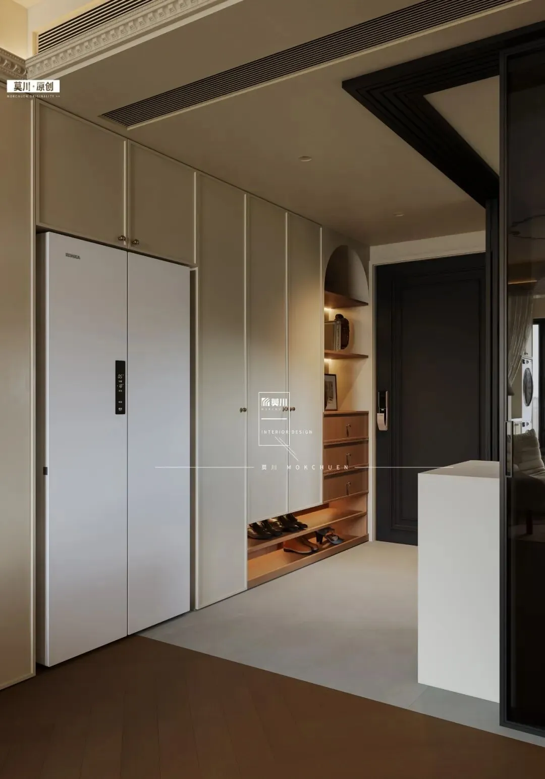 该设计不仅大幅提升了储物容量,更通过虚实结合的立面构成,营造出丰富而不显压抑的视觉层次。