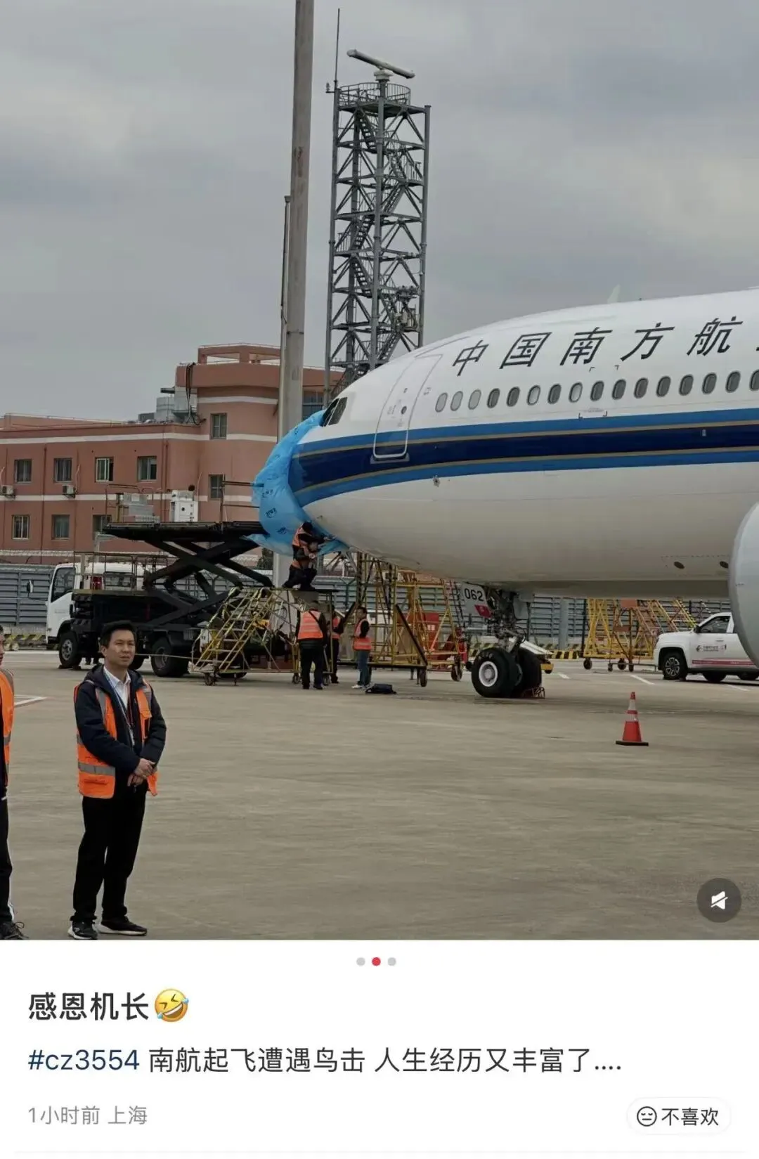 记者21日下午从虹桥机场客服人员处了解到,该航班确实发生延误,后续航班正在安排之中。南航客服工作人员则表示,飞机遭遇“鸟害因素”返航,后续航班预计当天下午起飞。