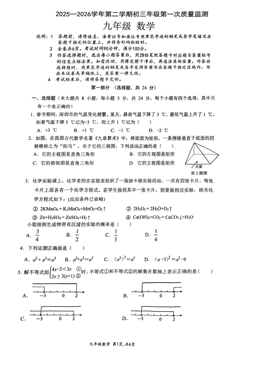 2026年3月深圳市蛇口育才教育集团初三一模数学试卷+答案