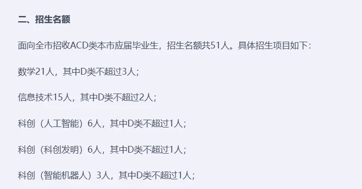 深圳实验学校光明高中部2025年一类自主招生计划招收51人,将科创方向细分为人工智能、科创发明、智能机器人三个专项,加上数学和信息技术,形成了完整的理工科技类培养体系 。