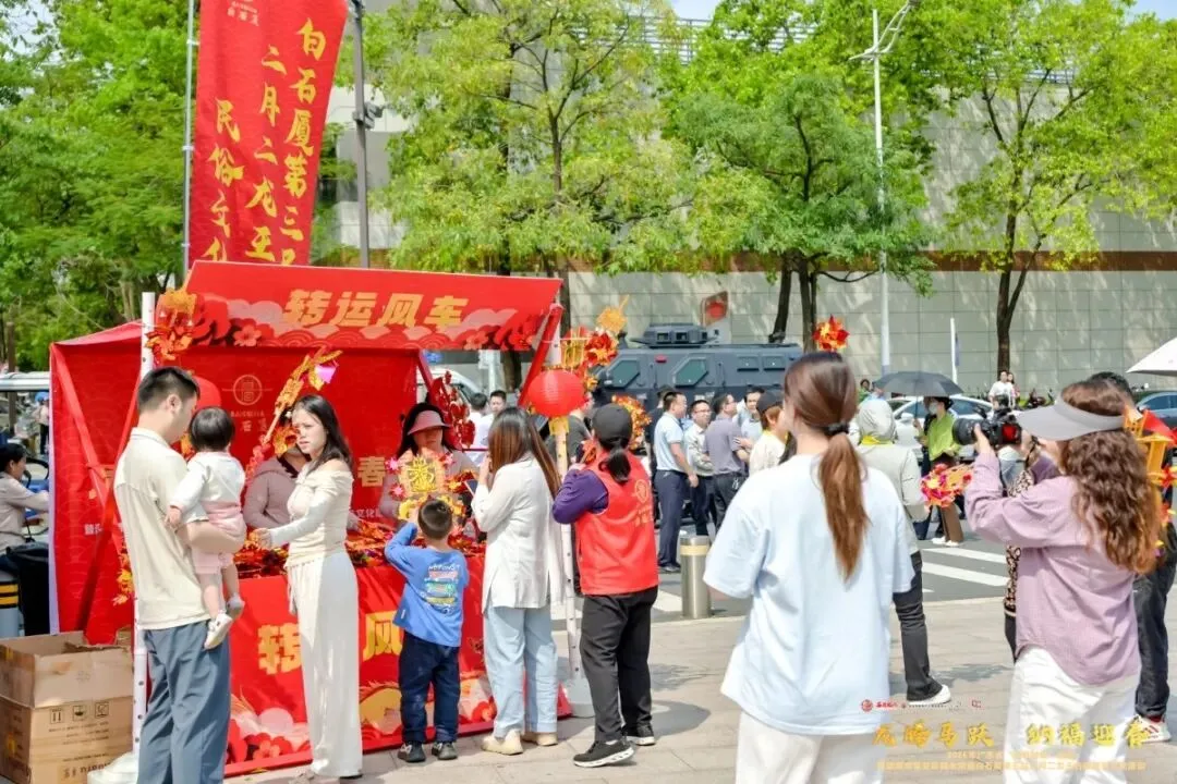 广场两侧的体验区更是热闹非凡:爱心义剪摊位前排出了十余米的长队,既有家长带着孩童来剃“喜头”,祈愿孩子健康成长,也有长辈特意来剪“龙头”讨个辞旧迎新的好彩头;状元百福墙、接“财神”等摊位也是人头涌动;此外,现场还设置了马上圈福、好运投壶等10个游戏摊位,以及美食一条街,市民集满6个印章即可换定制宣传品,好吃好玩又好逛。